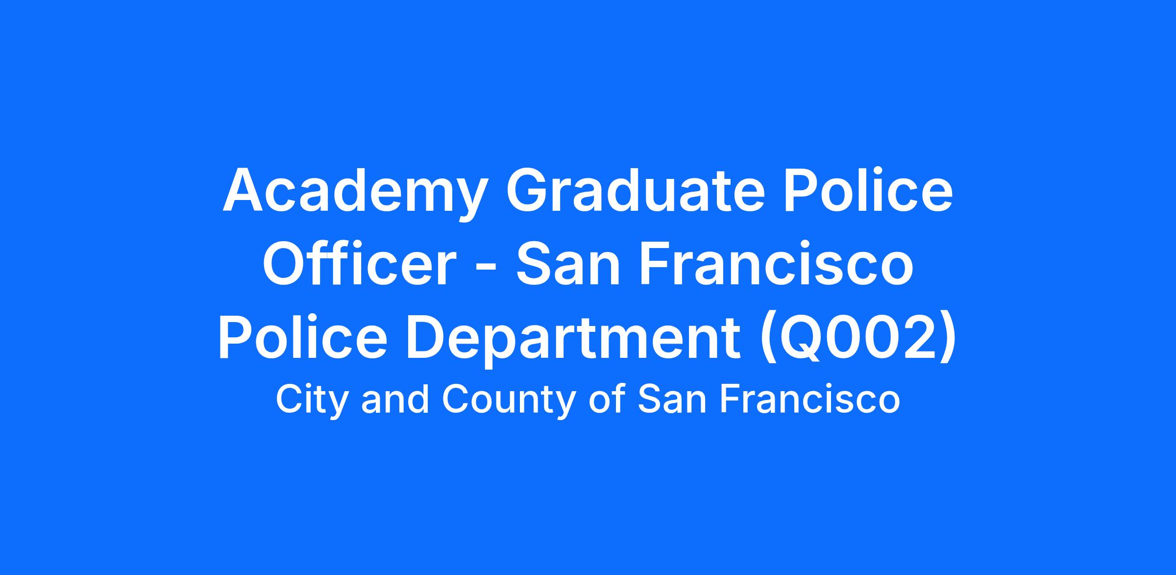 The San Francisco Police Department is seeking POST Academy Graduates who have completed a certified California POST Basic Academy within the last three (3) years. San Francisco Police Officers perform a wide variety of duties to promote public safety and security, prevent crime and enforce the law. Police officers perform a number of essential functions. For example, they patrol districts to prevent and detect crime; respond to calls for assistance; conduct criminal investigations; interact with the community to build cooperation and support; pursue and arrest suspects; enforce traffic and parking laws; write reports and maintain records; work with superiors, peers, and others as a team; prepare for and participate in planned events; prepare for court and give testimony; and fulfill other administrative duties when required. This is much more than a job; it is an opportunity to build a career of which you can be proud.