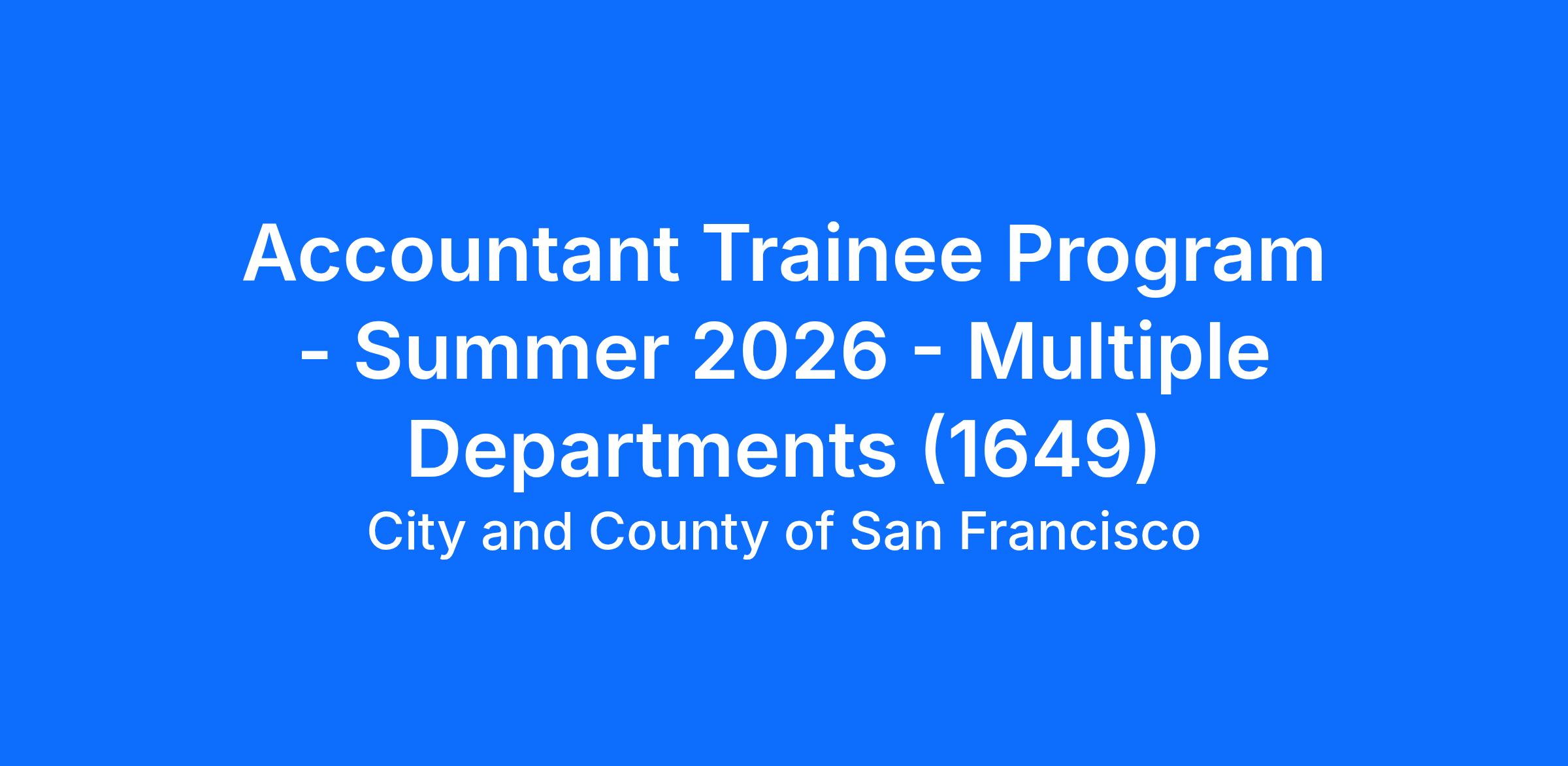 As the demand for transparency and accountability in government spending and allocation increases, so does the need for accounting professionals with specialized expertise in governmental financial management. The 1649 Accountant Trainee Program, also known as the 1649 Accountant Intern Program, was established to ensure excellence in the City and County of San Francisco's Accountant Series. This program provides trainees with a strong foundation in governmental accounting policies, procedures, and best practices through a blend of workshop training and hands-on experience.