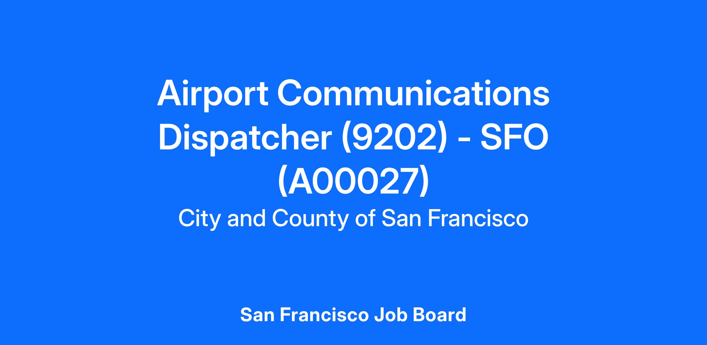 Under general supervision, the Airport Communications Dispatcher, during an assigned shift, receives incoming request calls for service, both emergency and non-emergency at San Francisco International Airport; dispatches crash/fire/rescue, airfield safety, police and other personnel regarding emergencies.