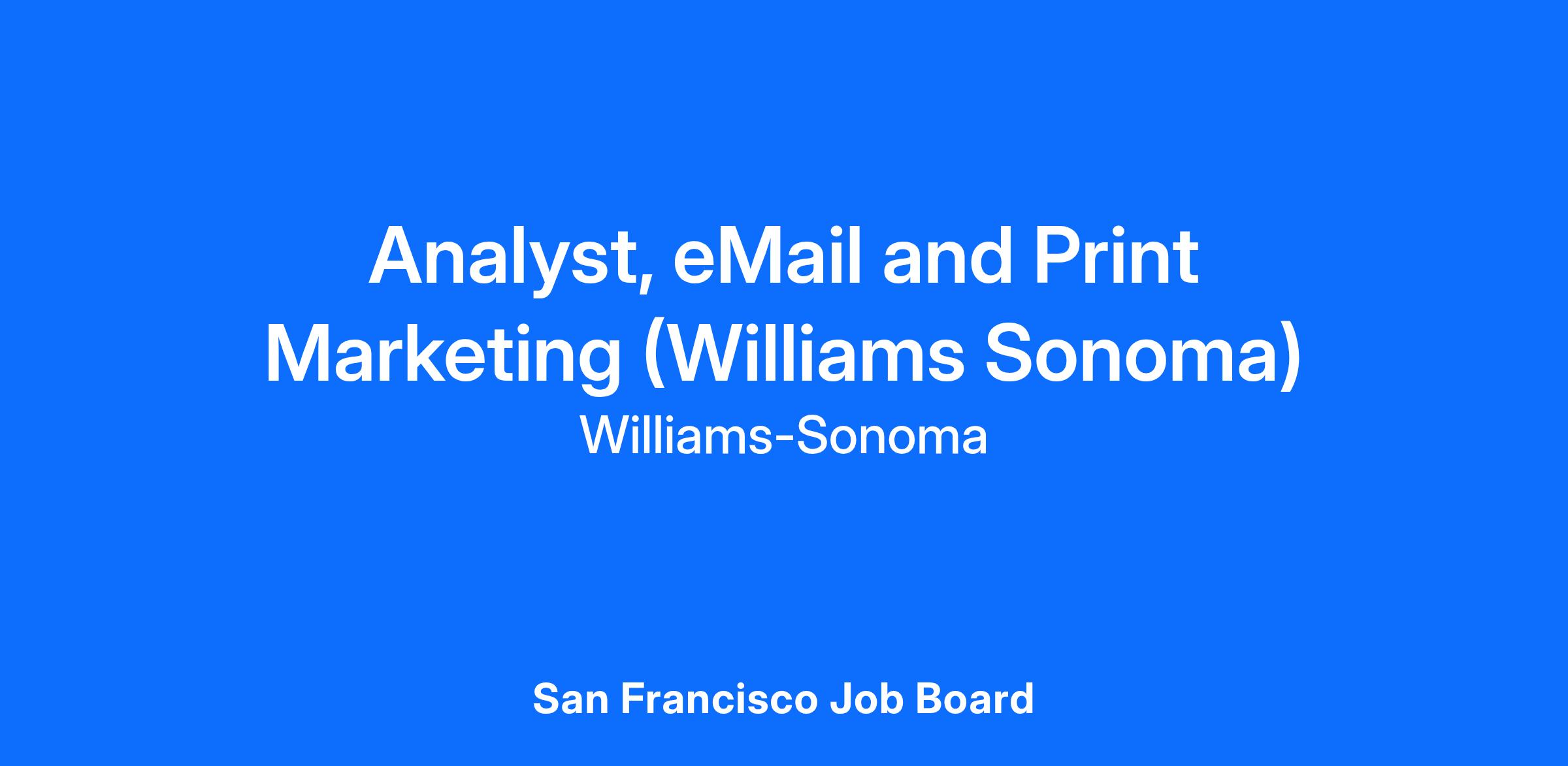 In this role, you will support the team in driving brand sales and optimizing the marketing investment across our email and print channels for Williams Sonoma. You will execute marketing campaigns in support of key brand initiatives that will drive profitable growth as well as identify programs to acquire customers. Key responsibilities include developing and executing circulation plans, analyzing performance to identify trends and opportunities, and working closely with cross-functional partners to ensure timely and flawless campaigns. You will also report on performance KPI’s and assist in monthly and annual financial budgeting, including invoice management and cost tracking. A successful candidate will have experience in marketing and possess strong analytical skills and attention to detail. You must have the ability to build strong cross-functional relationships and thrive in a fast-paced, rapidly changing multi-channel retail environment.