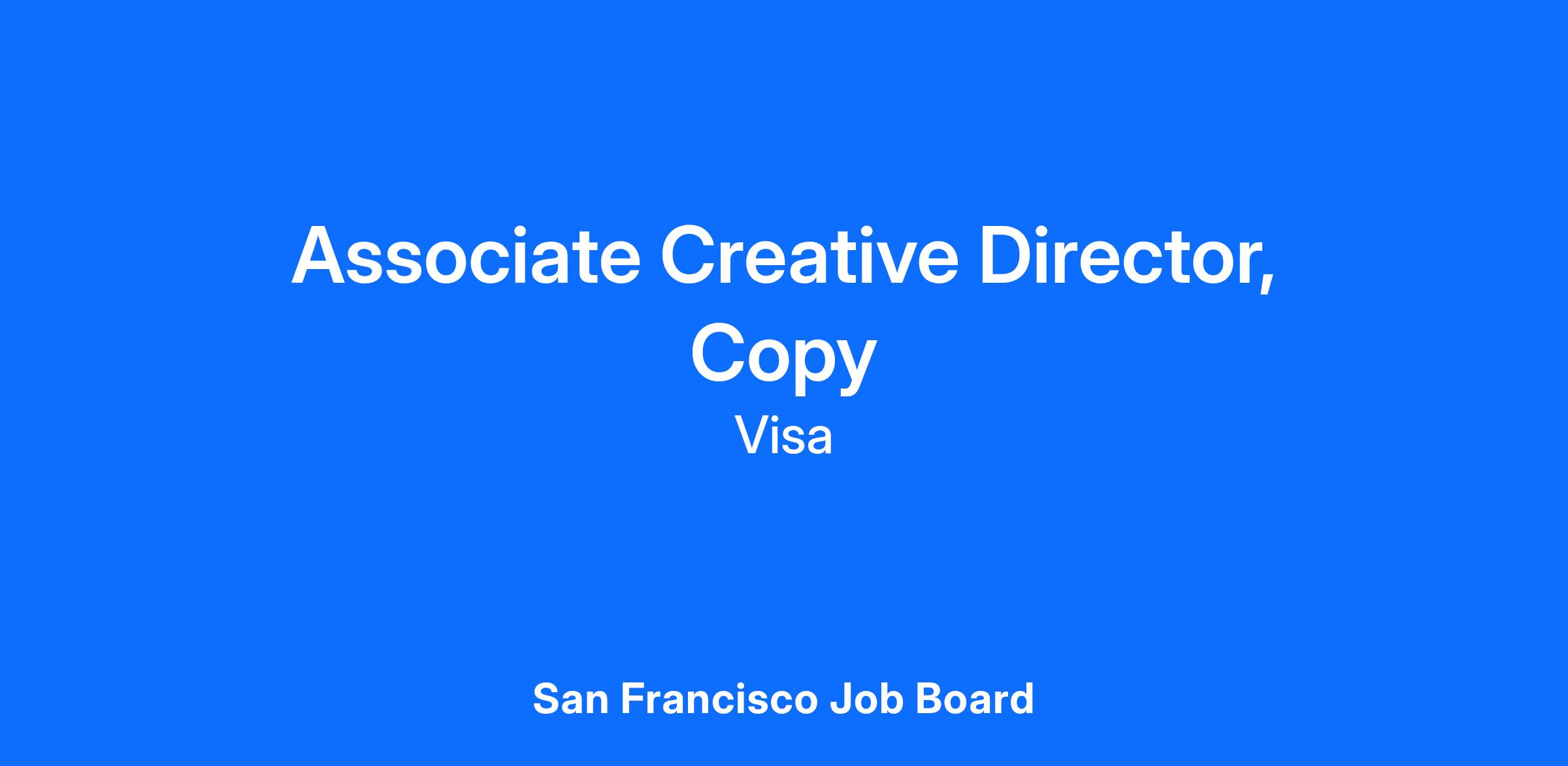 We’re looking for a Visionary ACD Copywriter to join us in our continued mission to build a best-in-class global creative studio for VISA and the Clients we serve.