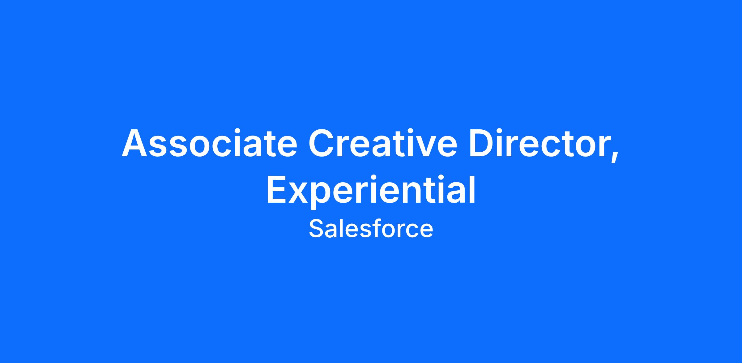 Salesforce is looking for an exceptional Associate Creative Director, Experiential to join our growing internal agency and help shape how the brand comes to life in physical spaces. Reporting into the Senior Creative Director, you will concept, design, and deliver brand experiences end to end from strategy and ideation through production and on-site execution across events, activations, trade shows, and brand partnerships.