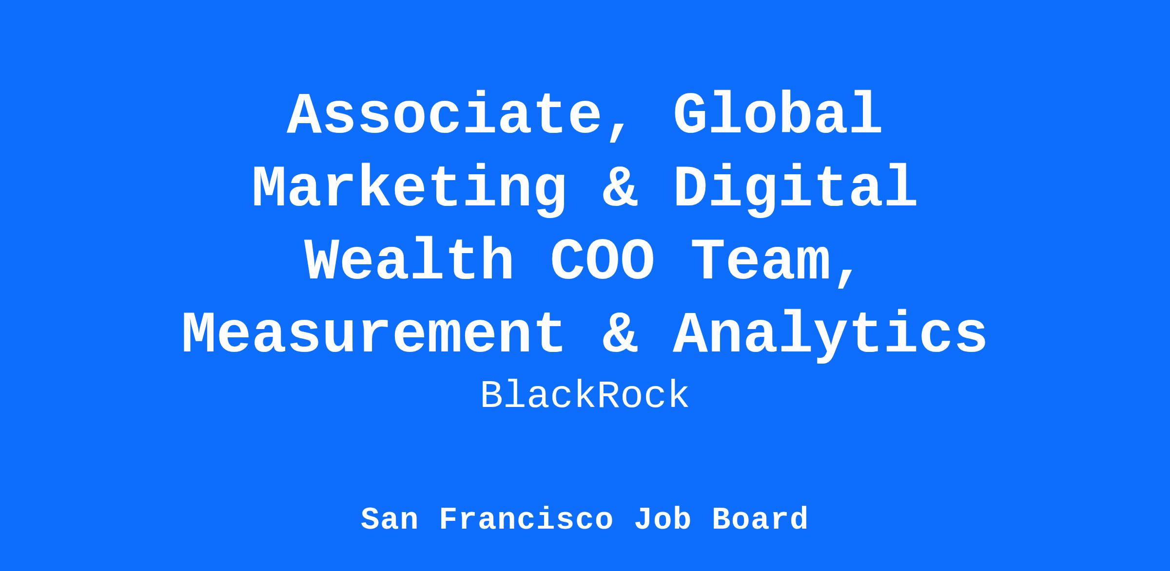 The Global Marketing & Digital Wealth COO Team within BlackRock is seeking an Associate, Measurement & Analytics to join the team. This Associate will be a key contributor to the advancement of data and analytics capabilities across Global Marketing, supporting the optimization, measurement and reporting of marketing performance across the organization.