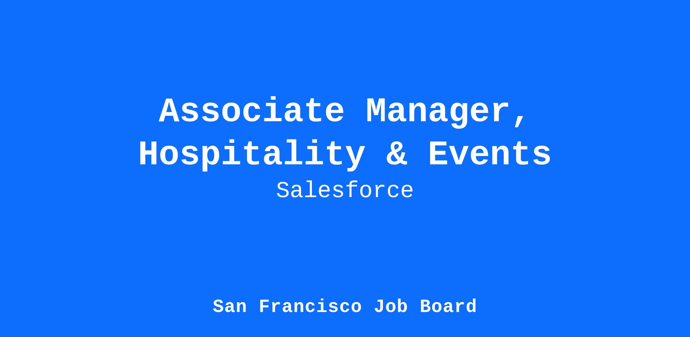 The Associate Manager, Hospitality and Events, will oversee activities across our dynamic San Francisco campus, executing event management in our state-of-the-art Auditorium, 'Ohana Floor, & Campus. This individual can expect direct interaction with executives, customers, and partners and will work closely with hospitality, facilities, and marketing teams. This position is very hands-on in the day-to-day planning and execution of our hospitality and events.