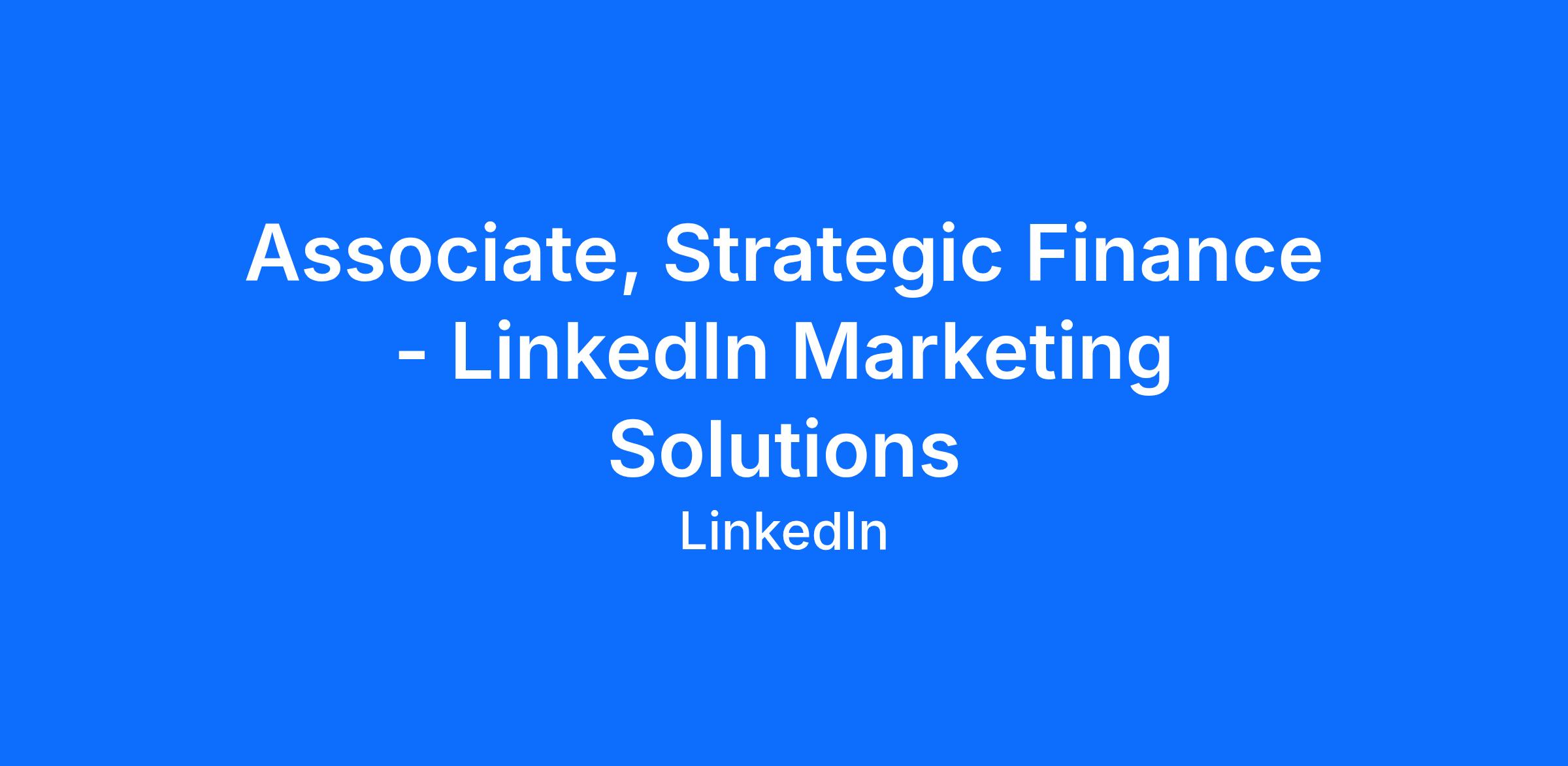 We are looking for a Strategic Finance Associate (LMS) to join our team in leading our top and bottom-line impact through objective analysis, operational insights, and strategic initiatives. This person will focus on a number of business-wide initiatives including but not limited to product GTM, Partnerships strategy, operating model redesign, and long-term strategic planning to support growth of LinkedIn Marketing Solutions – our ads business.