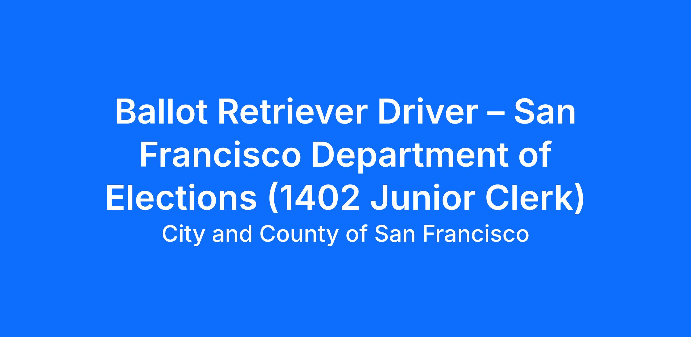 In preparation for the June 2, 2026, Statewide Direct Primary Election, the Department is seeking applications for seasonal positions of Ballot Retriever Driver (1402 Junior Clerk).
