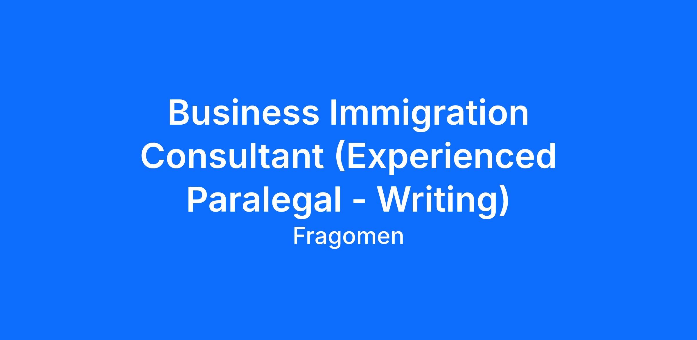 About the Role: Fragomen’s Business Immigration Consultant position will provide you with the opportunity to make an immediate impact on our business, as well as offer training, development, and long-term growth opportunities. Fragomen’s exclusive focus on immigration means you will work in an exciting, dynamic, and challenging atmosphere with people who are passionate about immigration. Providing world class client service and industry leading technology solutions, Fragomen helps our clients to navigate the complex world of global immigration to better achieve their goals.