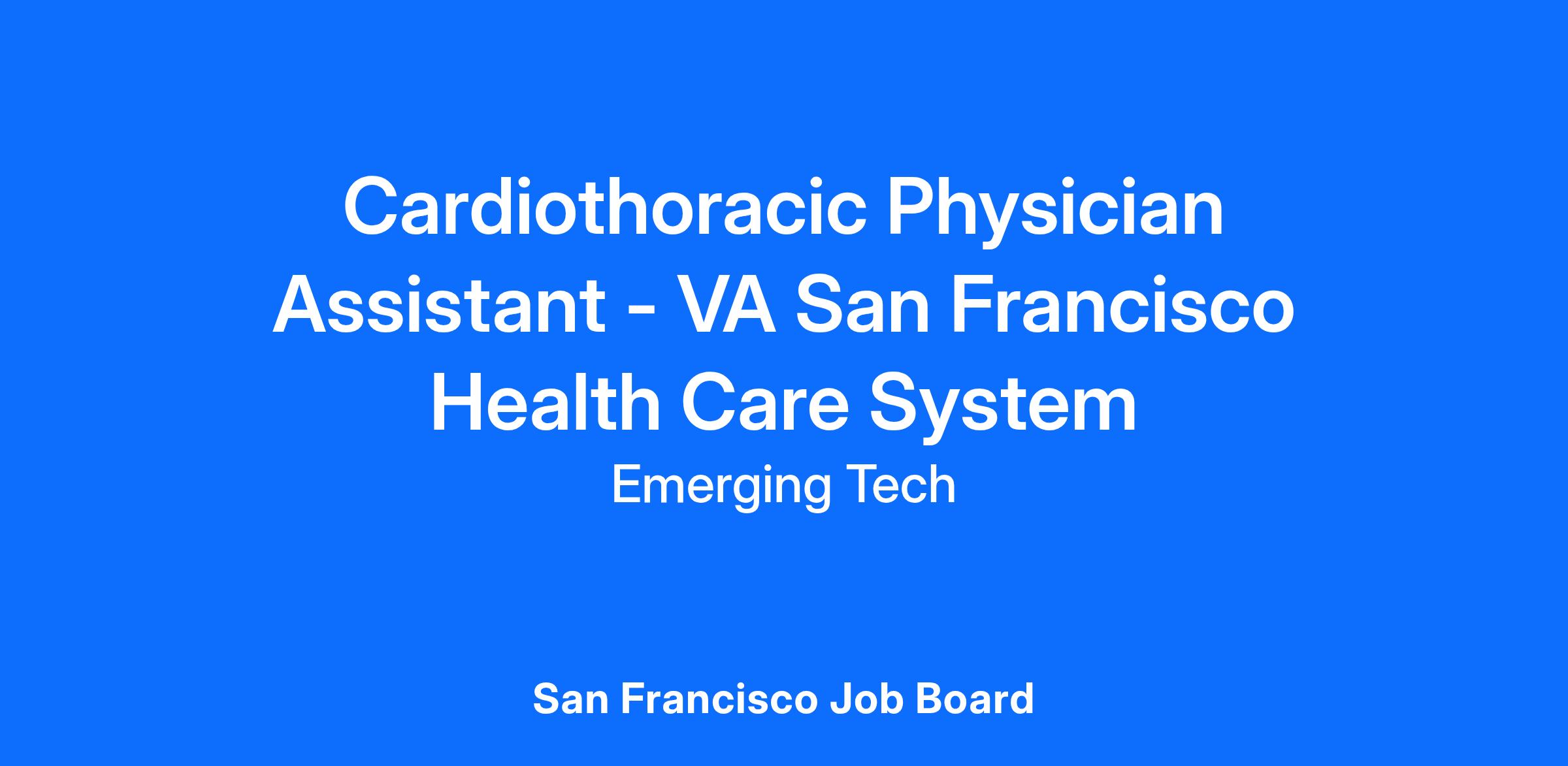 Emerging Tech is seeking an experienced Cardiothoracic Physician Assistant (CTPA) to provide on-site surgical and perioperative cardiothoracic support services to Veterans at the VA San Francisco Health Care System in California. The CTPA will deliver advanced cardiothoracic surgical assistance, perform complex endoscopic graft harvesting, support robotic and open surgical cases, and contribute to the VAβs mission of providing world-class care to our nationβs Veterans.