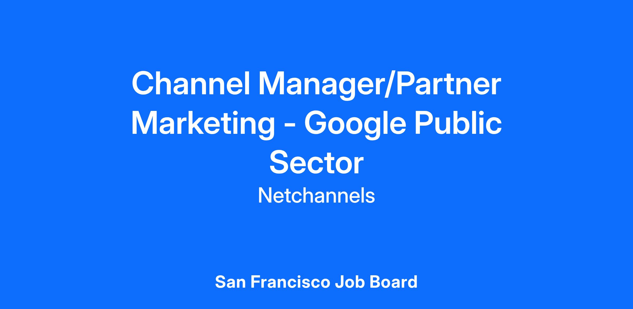 Netchannels is looking to hire a Channel Manager/Partner Marketing for our client: Google Public Sector. This a FTE position of Netchannels, long term.