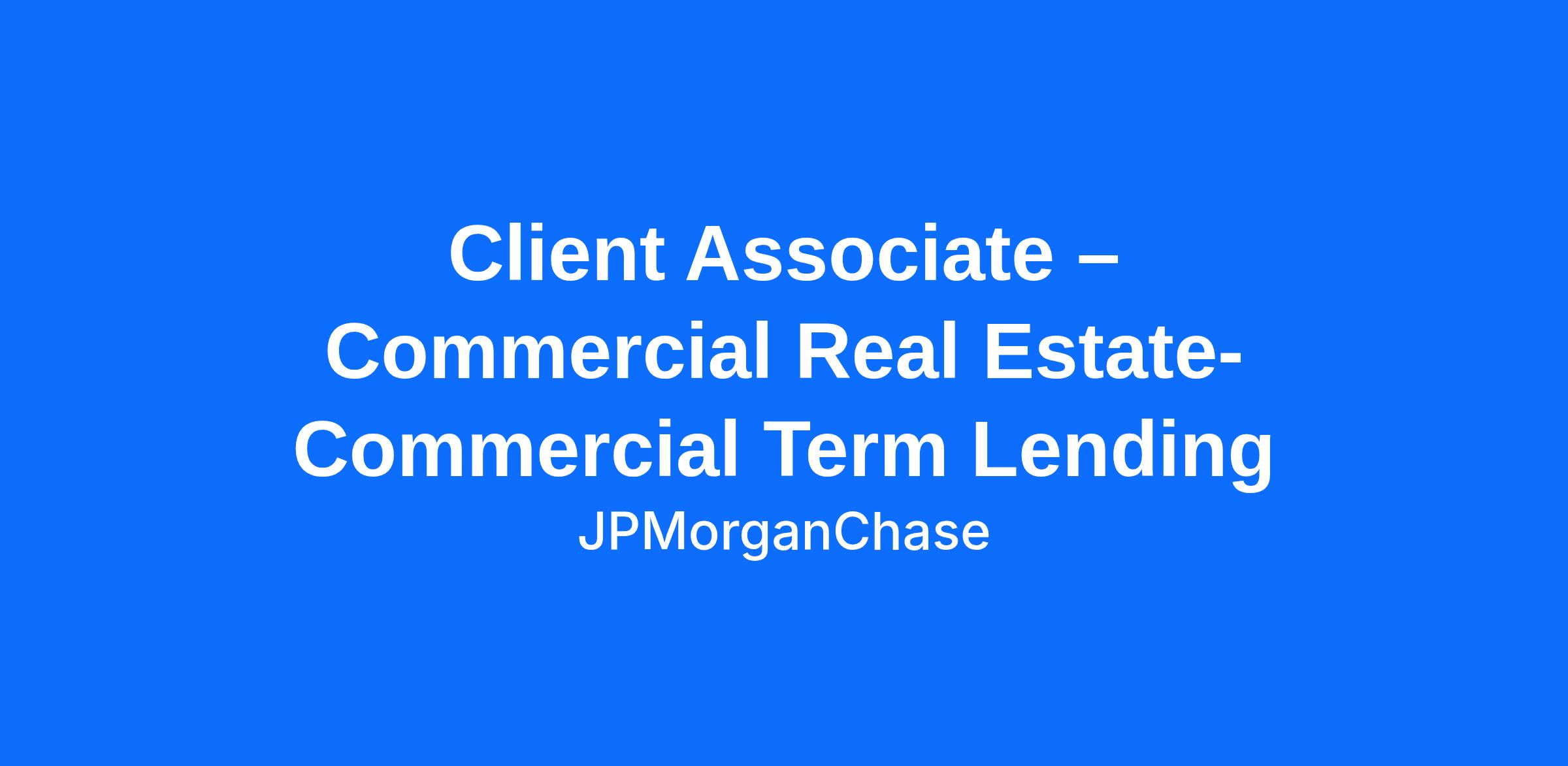 As a Client Associate within the Commercial Term Lending team, you will have a relentless internal drive to succeed, a laser focus on providing a best-in-class client experience and the understanding that honing your inherent Sales/Business Development skills is the key to success and advancement.