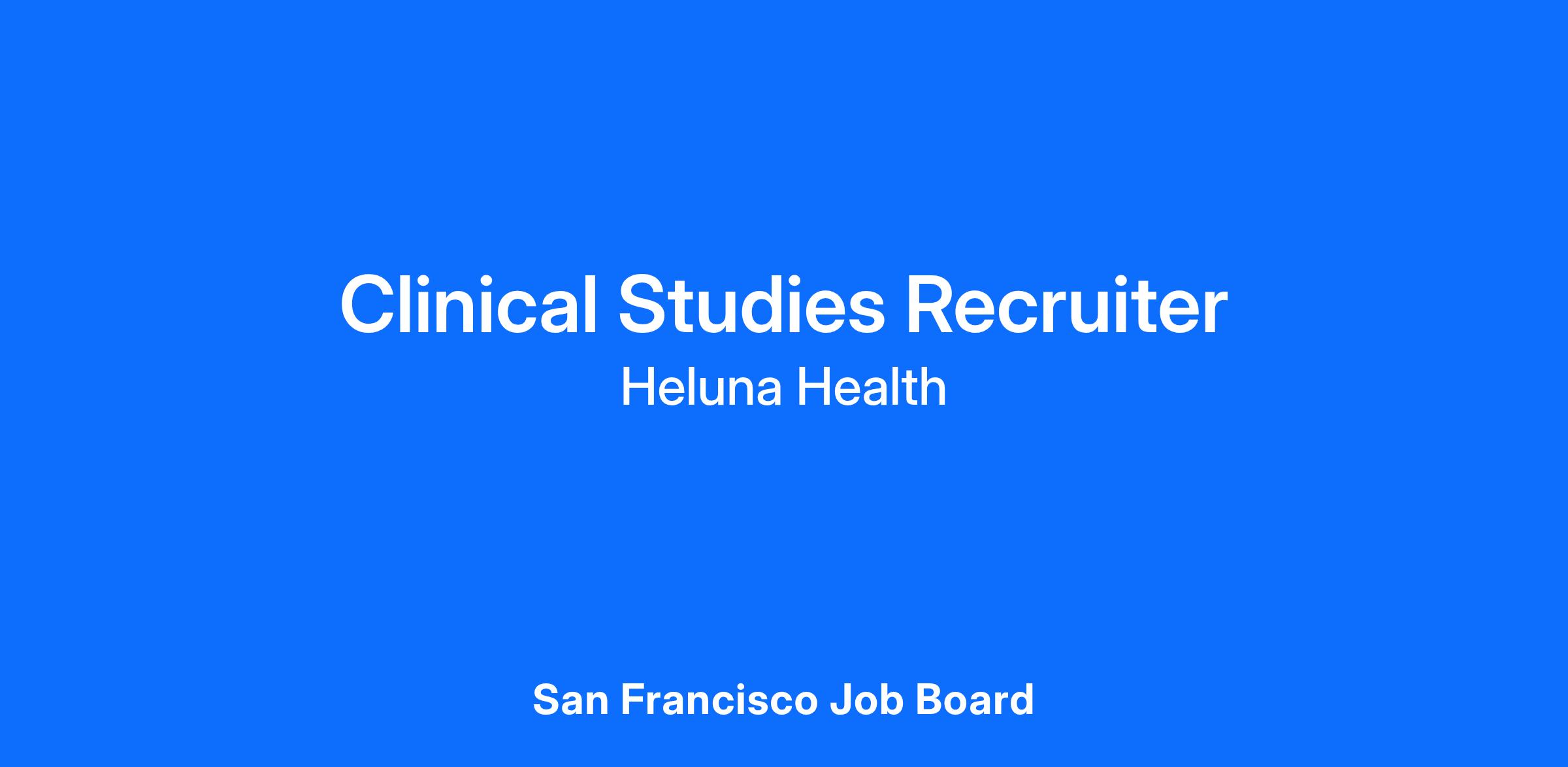 Heluna Health invites applications for a full time Clinical Studies Recruiter position. Bridge HIV is a grant-funded research unit affiliated with the San Francisco Department of Public Health and the University of California San Francisco. Bridge HIV has a 30-year history of leading HIV prevention studies.