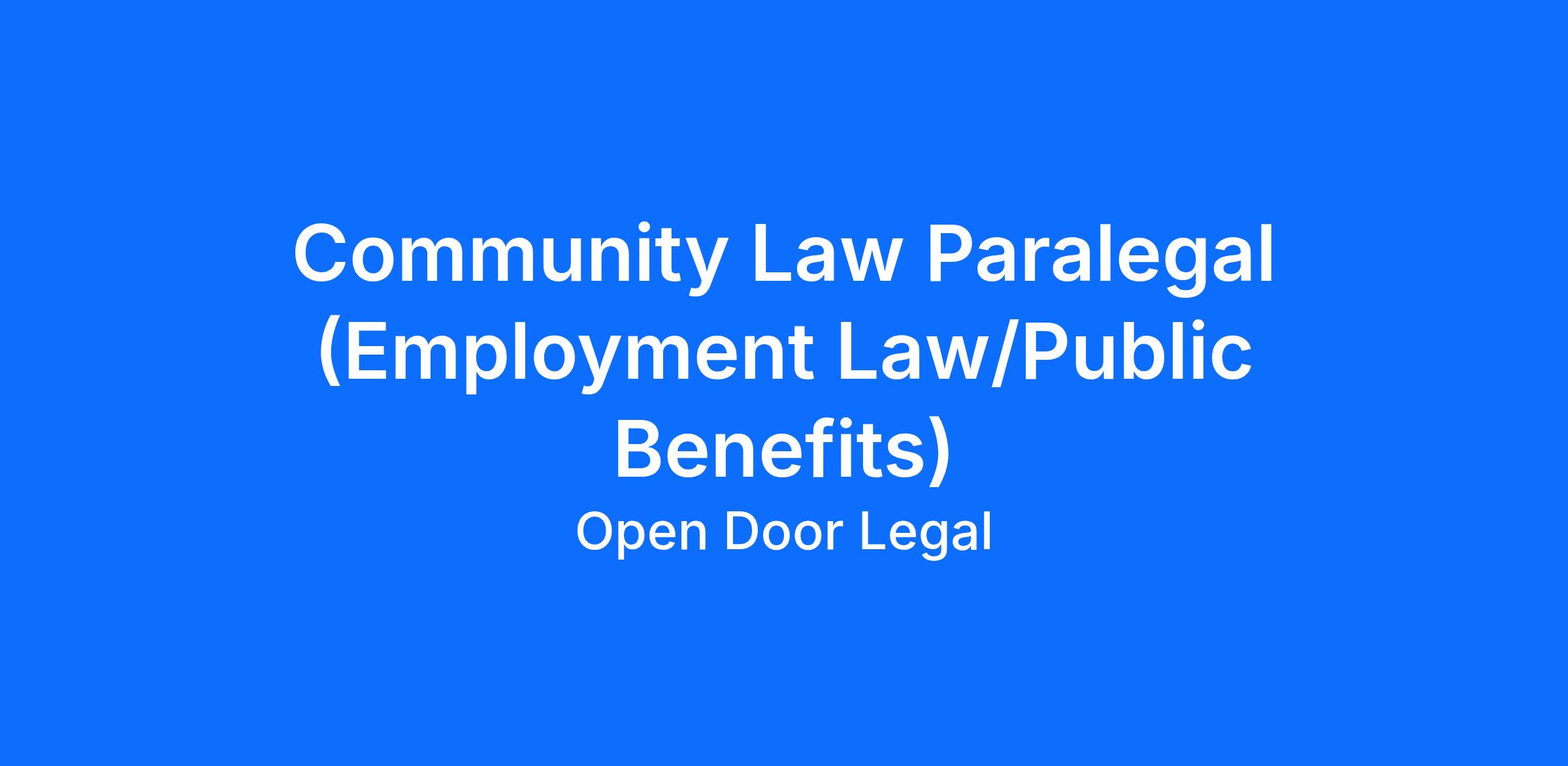 Community Law Paralegal (Employment Law/Public Benefits) - San Francisco, CA