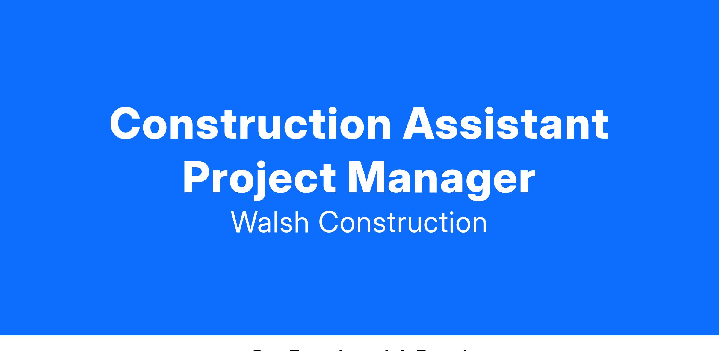 Walsh is currently seeking an Assistant Project Manager for the Water Division.