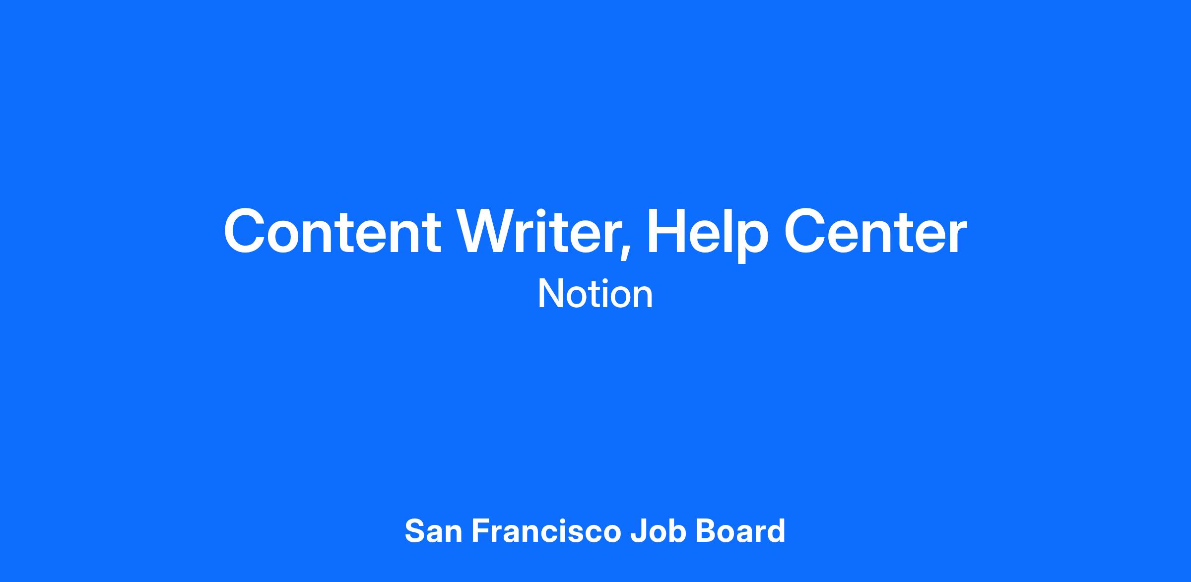 As a Help Center Content Writer, you will plan, write, and maintain documentation in Notion’s Help Center. Your content will be customer-facing, and used not only on the help center, but also as a content engine powering self-serve support and education within the support chatbot, Notion AI, and other distribution surfaces. You’ll write content using Notion’s voice and tone; partnering with Product, Engineering, CX, and Marketing to keep content accurate, complete, and localized. You’ll optimize for discovery and performance using SEO and AIO best practices alongside search data and site analytics, and leverage top contact drivers to increase self‑serve support capabilities.