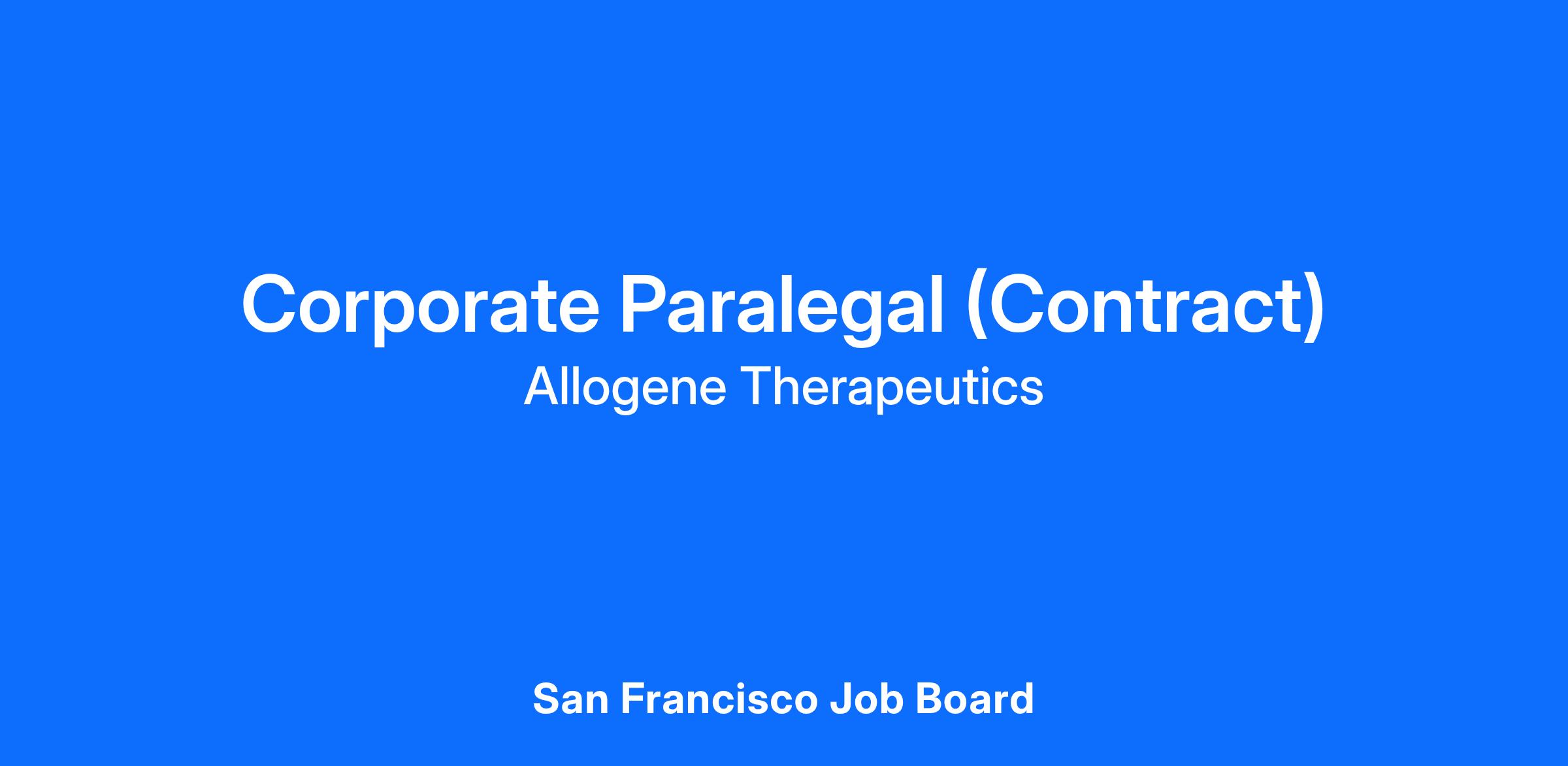 Allogene is seeking a detail-oriented Paralegal to provide comprehensive legal support to the Legal Department with a focus on contracting and corporate governance. This position will work closely with in-house counsel and business stakeholders to support the negotiation, execution and administration of various agreements, and to ensure compliance with corporate requirements. This position will report directly to the Sr. Director, Corporate Counsel.