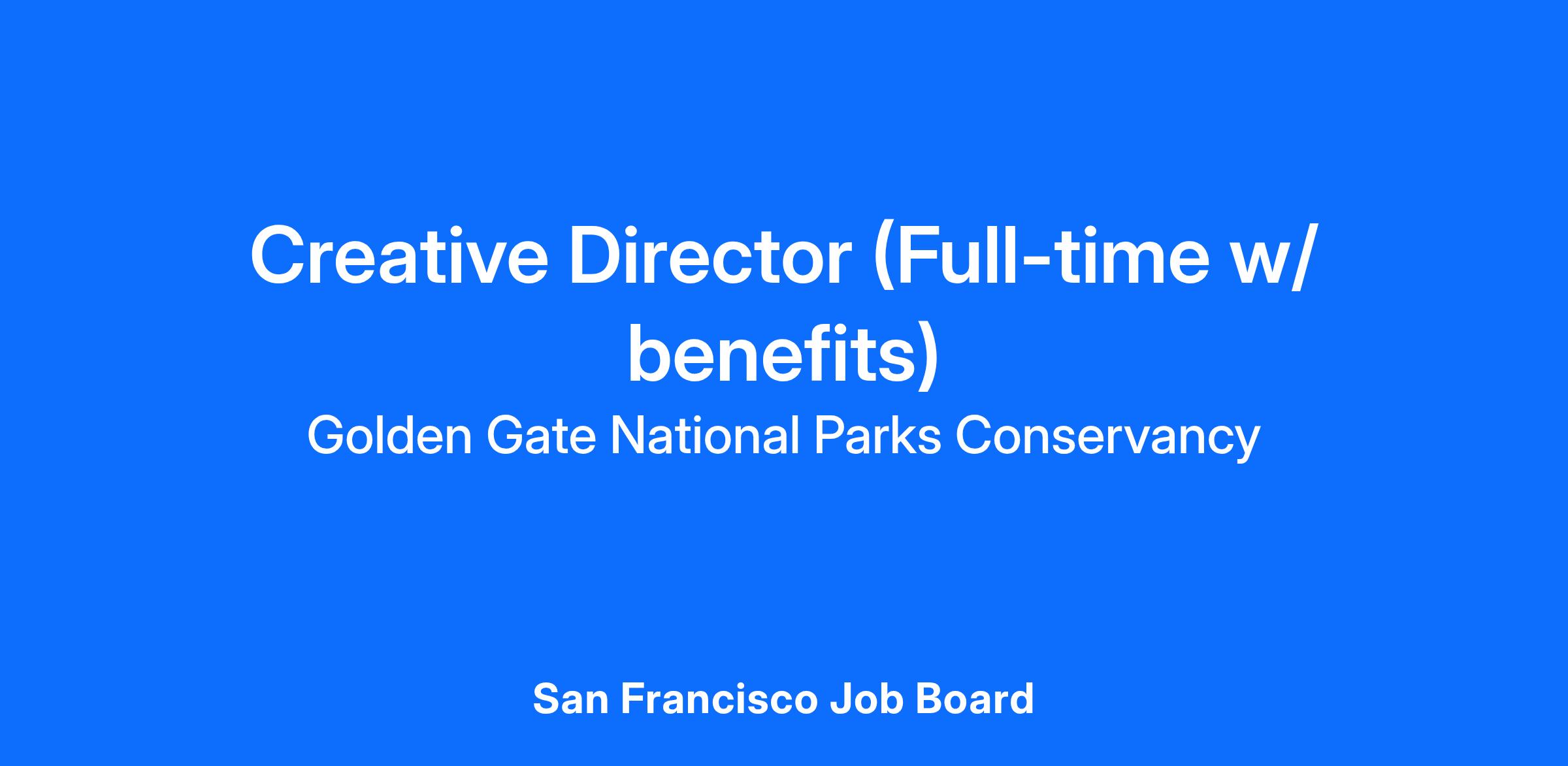 The Golden Gate National Parks Conservancy seeks a Creative Director to lead the organization’s design direction during an exciting period of transformation. This individual will serve as both a strategic design leader and a hands-on creative director, shaping the Conservancy’s overall look and feel and elevating the artistic expression of our work across all channels—including digital, print, marketing, environmental, and experiential platforms.