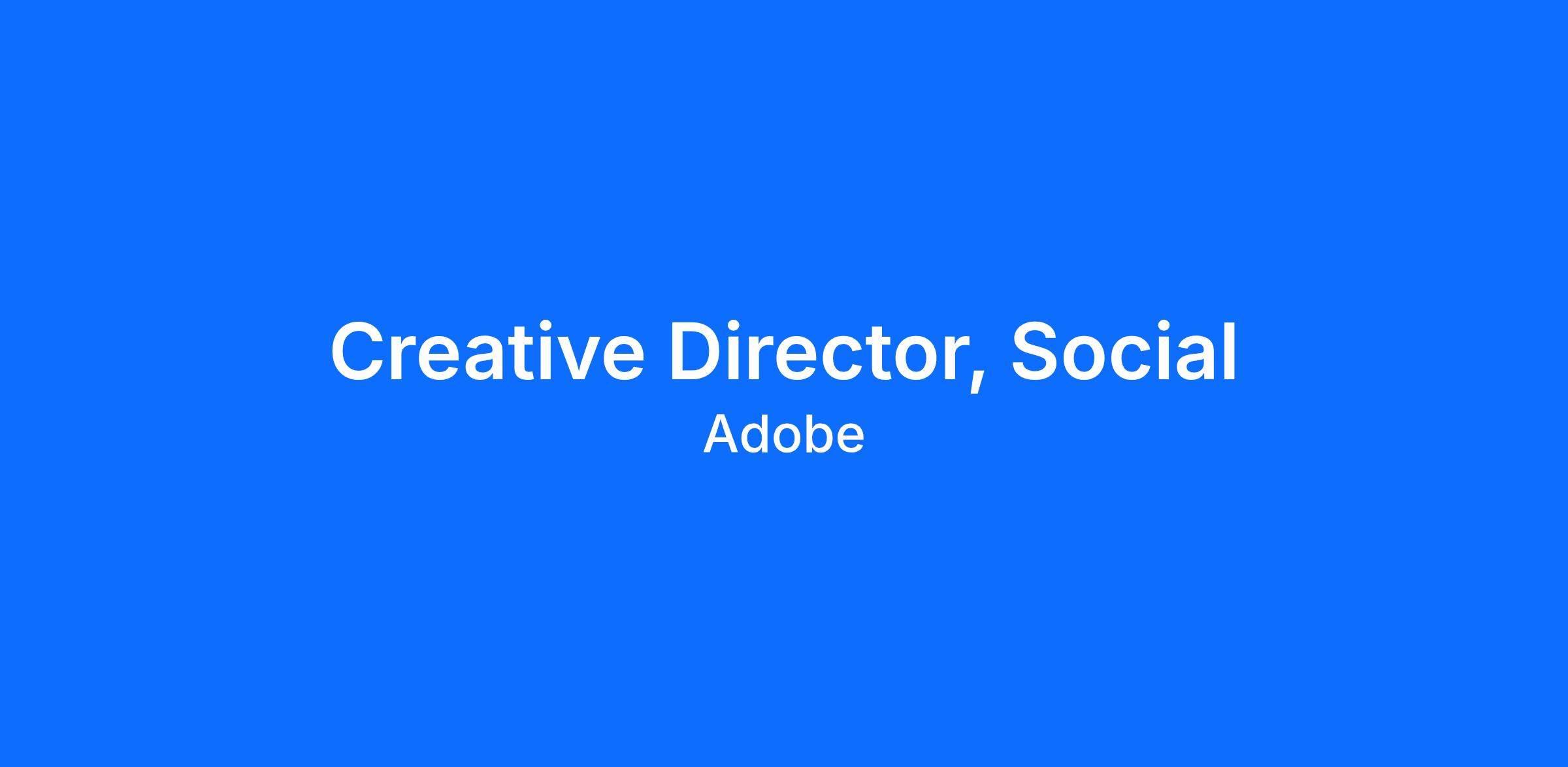 The Creative Director for the Social Creative Studio will define and drive the overarching creative vision for an Adobe social audience across channels and audiences. This creative leader will set the bar for breakthrough storytelling, platform-first creativity, and ensure Adobe shows up in culture with relevance and impact. The role will collaborate with a multidisciplinary creative team, strategists, influencer marketers, and cross-functional brand teams to make work that inspires creators, creative pros, and communities worldwide.