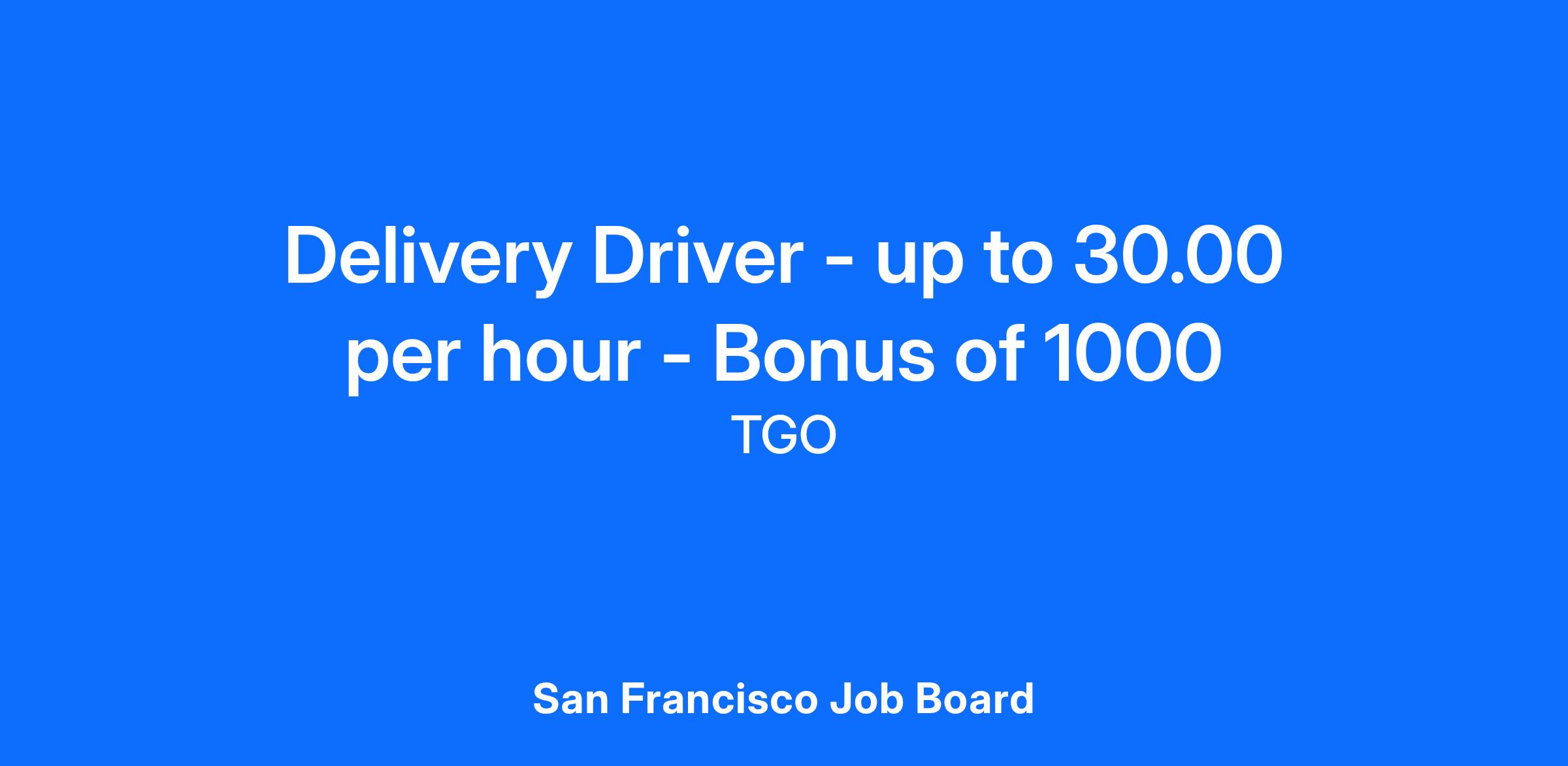 Apply today and start next week as a Delivery Driver! NO EXPERIENCE REQUIRED! EARN UP TO $30.00 HOURLY WITH BONUSES! WILLING TO TRAIN THE RIGHT CANDIDATES! Based in South SF.<\/b> No Commercial Driver's License needed to be a delivery driver. JOB DETAILS: QUALIFICATIONS: Torero Logistics Corp (TLC) is a logistics company specializing in parcel delivery to residential and commercial locations. We pride ourselves in being a company that believes in creating an efficient, consistent, and streamlined work environment for our team to excel in with a smile. We are based out of South San Francisco. Join our team now!!! Delivery Driver