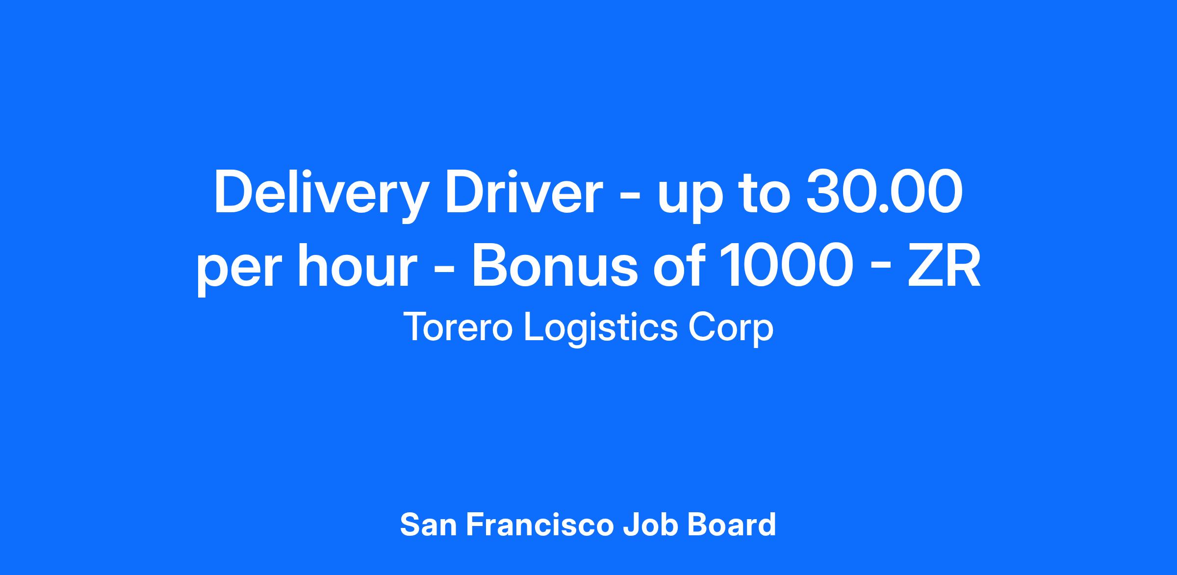 Apply today and start next week as a Delivery Driver! NO EXPERIENCE REQUIRED! EARN UP TO $30.00 HOURLY WITH BONUSES! WILLING TO TRAIN THE RIGHT CANDIDATES! Based in South SF.
