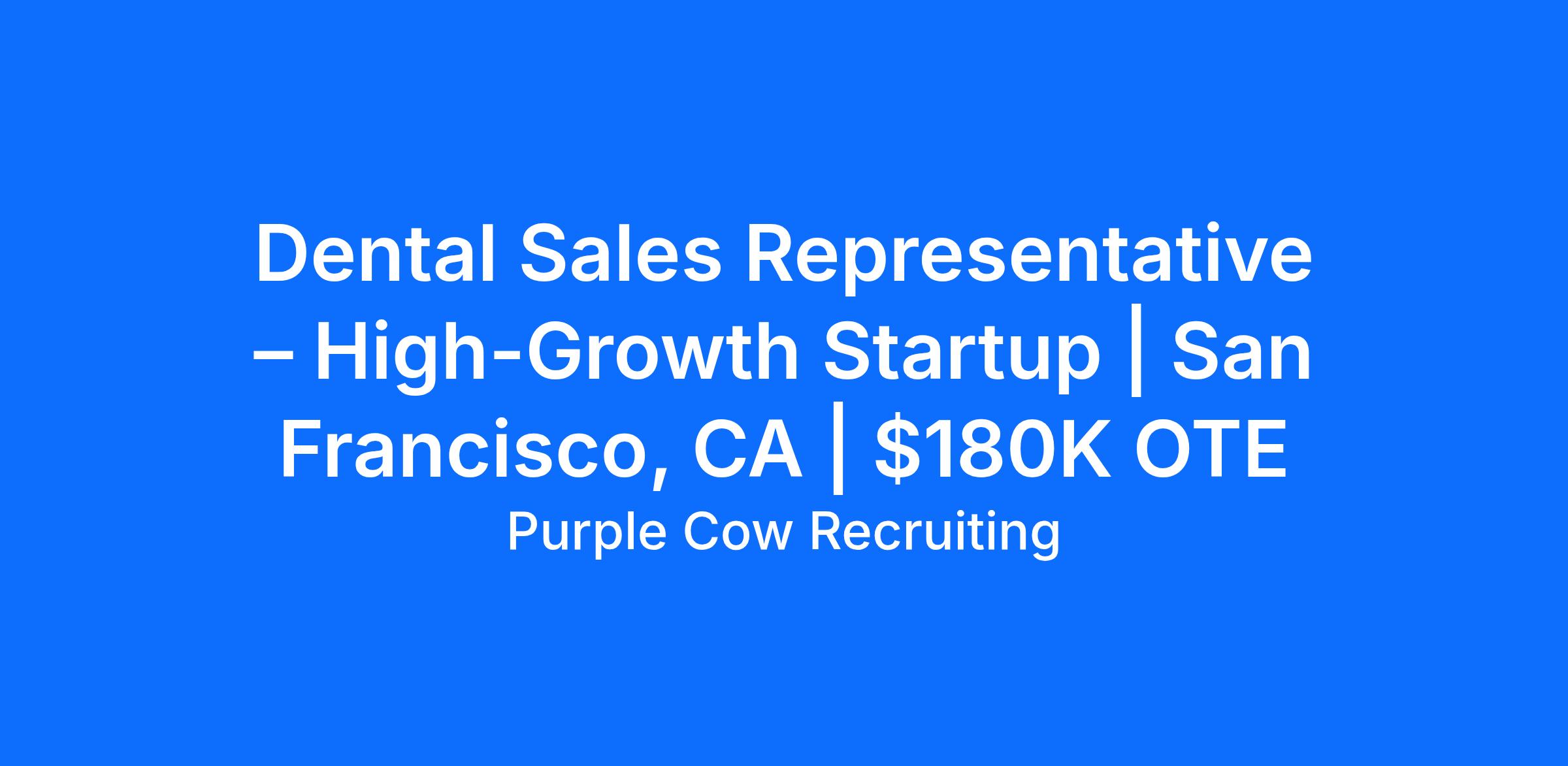 Heartline Staffing, in partnership with Purple Cow Recruiting, is seeking a Dental Sales Representative / Territory Manager to drive new business development across the San Francisco, California market. This is a high-growth opportunity with a well-funded startup bringing an innovative clear aligner and orthodontic technology platform to market.