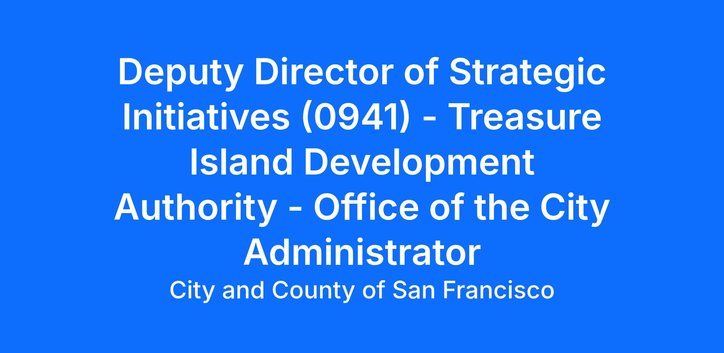 Under general direction from the TIDA Director, the Deputy Director of Strategic Initiatives is responsible for leading a multi-disciplinary team (including TIDA contractors, consultants and TIDA staff) in coordinating the successful planning and redevelopment of Treasure Island and Yerba Buena Island. This includes development agreement implementation; infrastructure and affordable housing construction; transportation program development and system implementation; environmental and land remediation; parks and open space planning and construction; development and implementation of resiliency strategies; and inclusive and equitable urban and land use planning policies informed by transparent and meaningful public engagement and TIDA Board policy priorities.