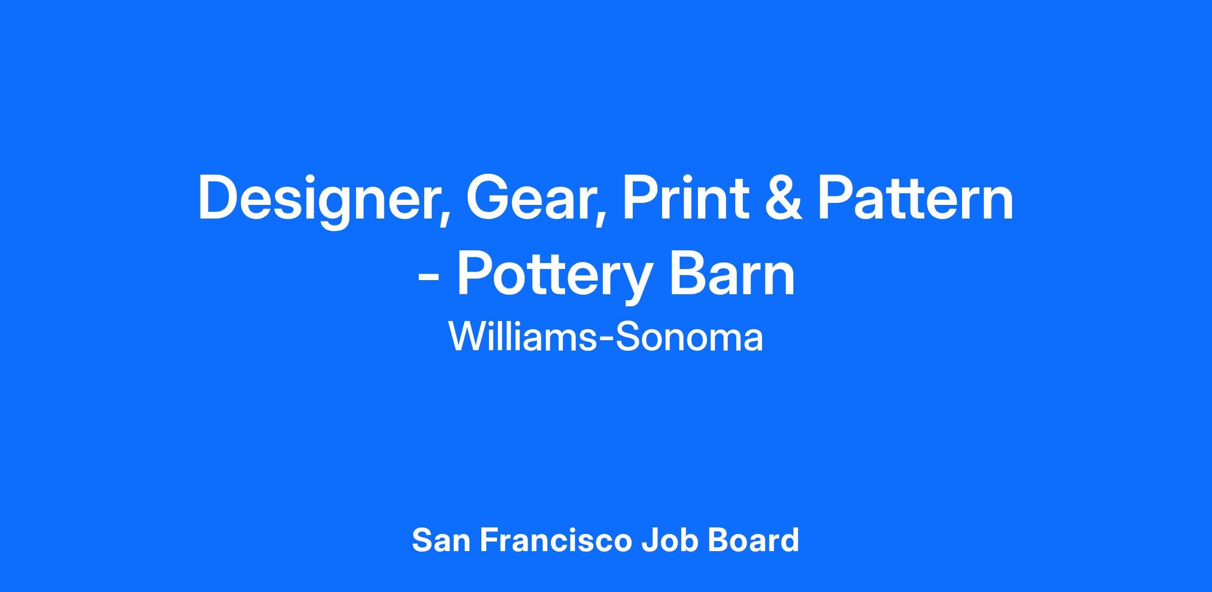 Williams-Sonoma, Inc. is an Equal Opportunity Employer. Williams-Sonoma, Inc. will consider for employment qualified applicants with criminal histories in a manner consistent with the requirements of the San Francisco Fair Chance Ordinance, or other applicable state or local laws and ordinances.