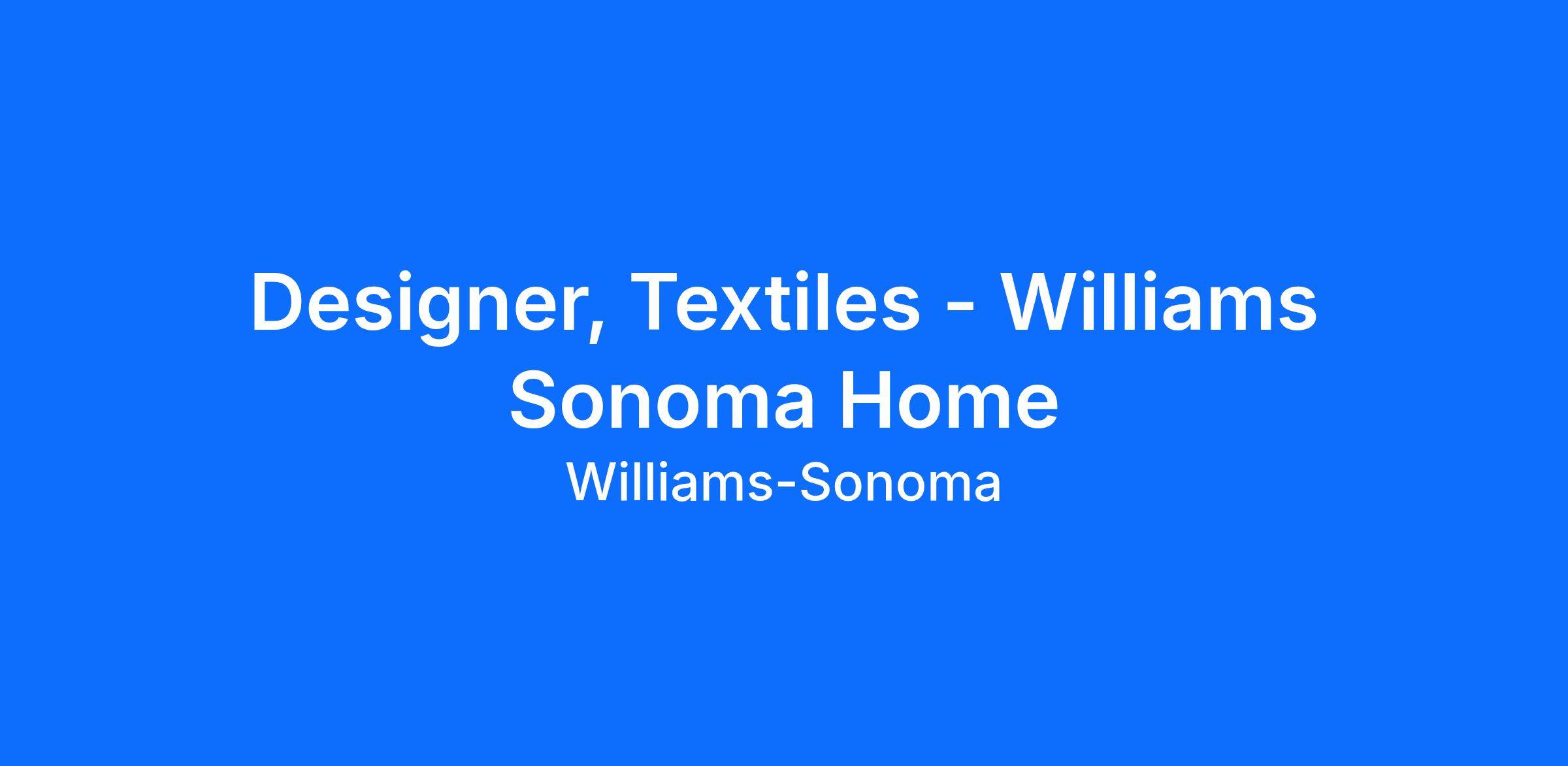 - Has ability to clearly communicate the needs with Williams Sonoma Global Operations vendor partners and sourcing in order for vendors to execute design vision