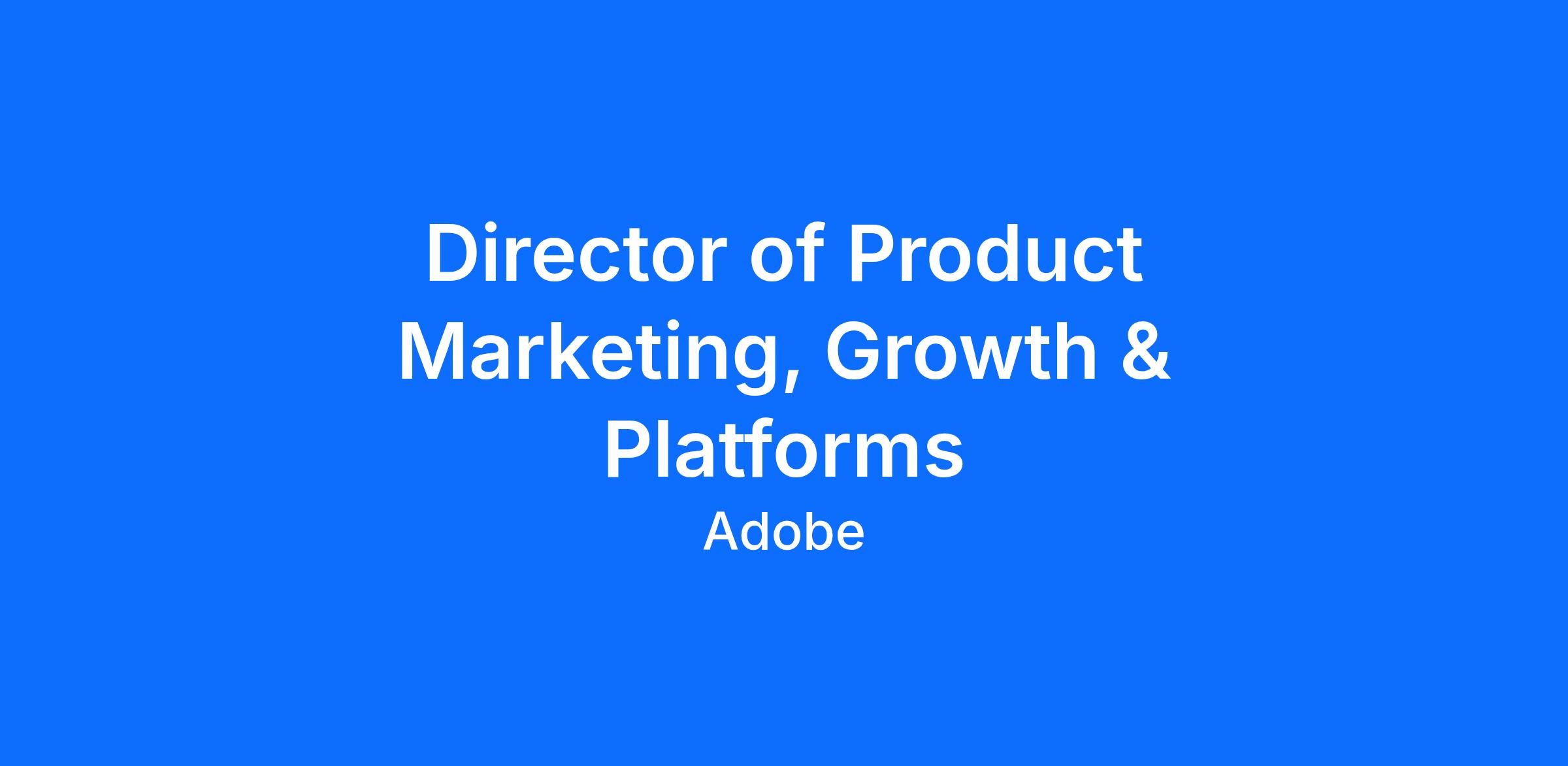 We are seeking a Director of Product Marketing, Growth & Platforms to drive user and revenue expansion for Adobe's Creator portfolio. In this role, you will coordinate the growth strategy for Firefly, Photoshop, Lightroom, and Premiere across both web and mobile platforms.