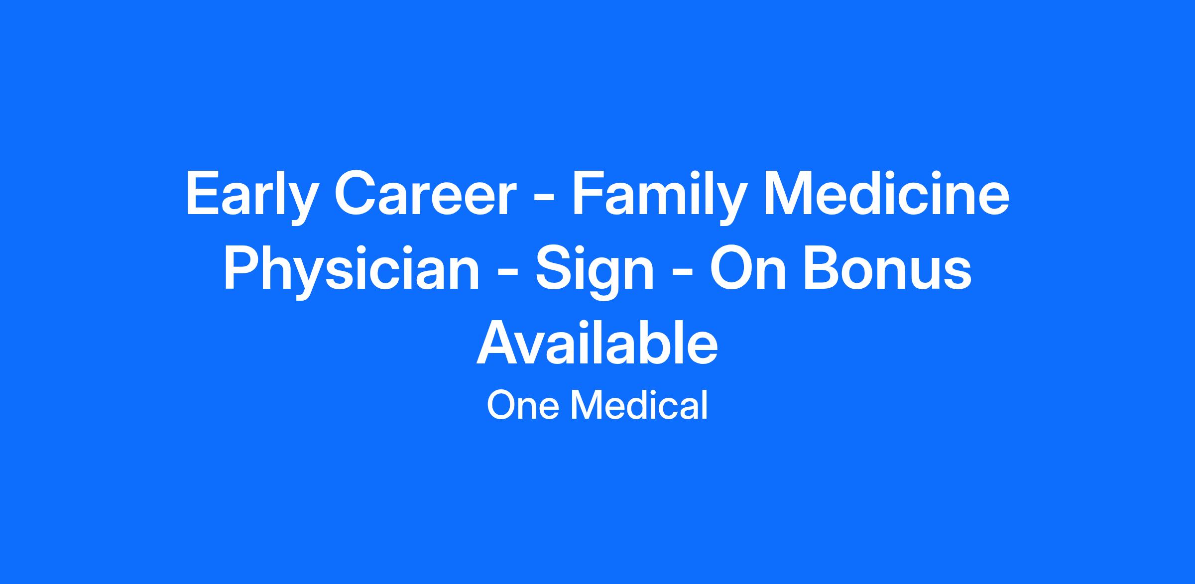 Why start your primary care career at One Medical: When you join One Medical after completing your residency, you’ll join a community of clinicians who will help you thrive in your career and use technology that was custom-built with physicians in mind. From orientation and onboarding to continuing education and leadership development, One Medical is with you every step of the way.