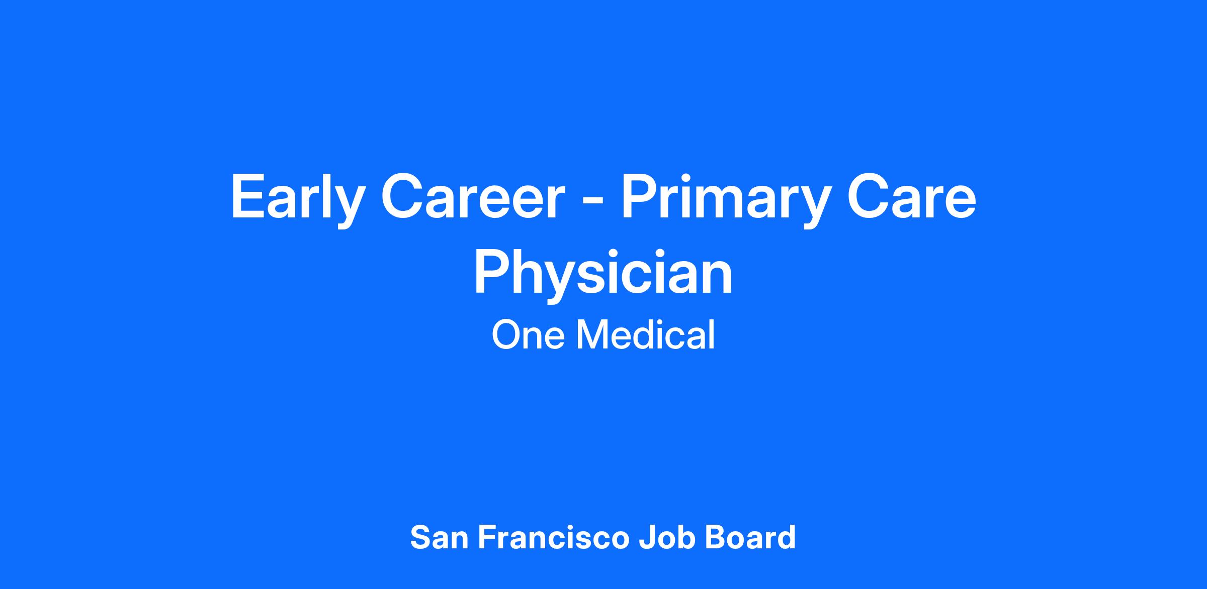 Why start your primary care career at One Medical: When you join One Medical after completing your residency, you’ll join a community of clinicians who will help you thrive in your career and use technology that was custom-built with physicians in mind. From orientation and onboarding to continuing education and leadership development, One Medical is with you every step of the way.