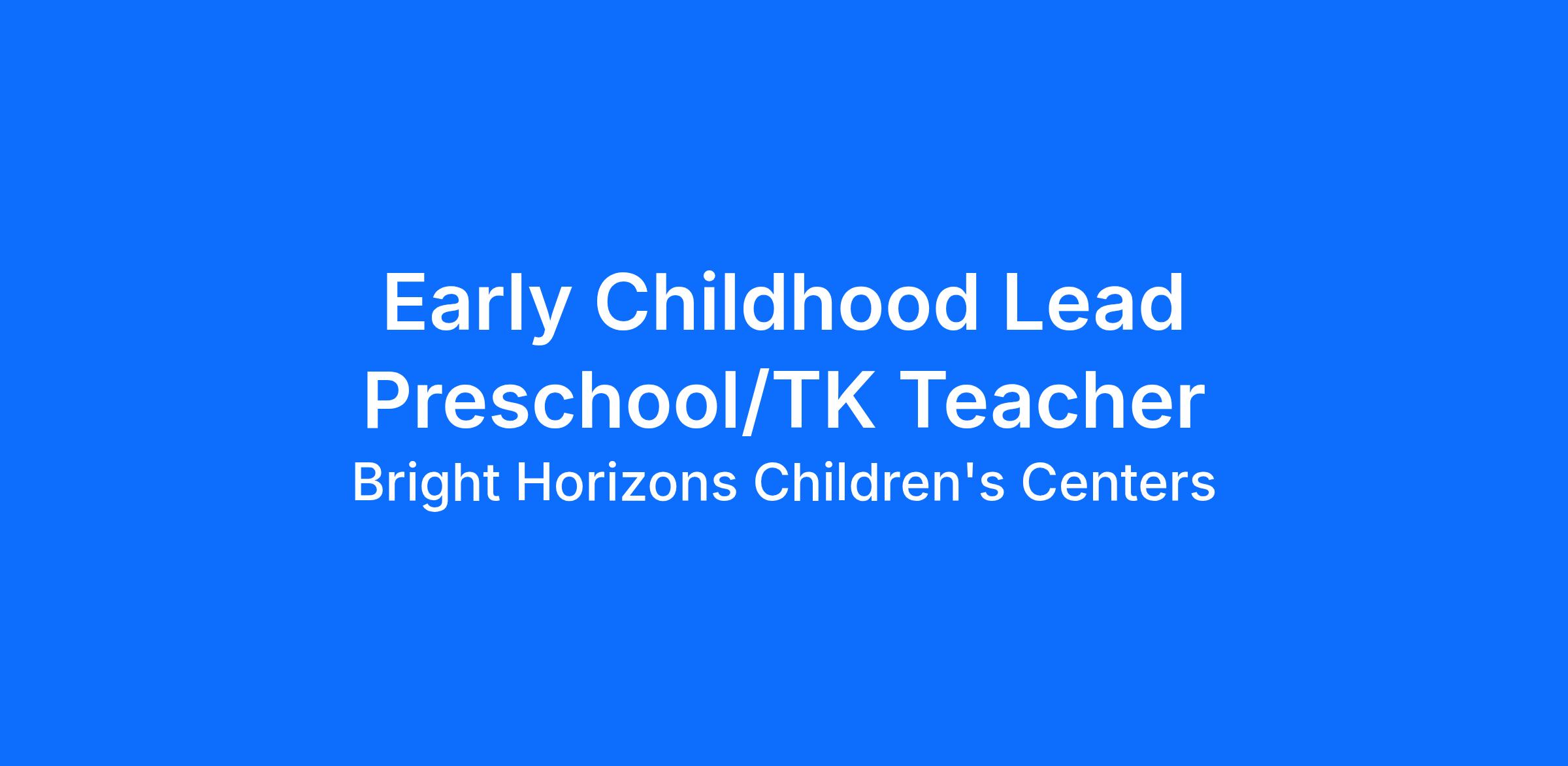 This position requires the employee to comply with all applicable federal, state, local, Bright Horizons’, and client site requirements concerning immunizations, employment physical/screening, and health and safety training. If hired, you will work in person in an early education/preschool child care center to provide supervision, care, curriculum delivery and services per Bright Horizons’ policies, procedures and guidance, in compliance with any applicable laws and regulations, and in a manner that will ensure the safety of children in Bright Horizons care and the employee.