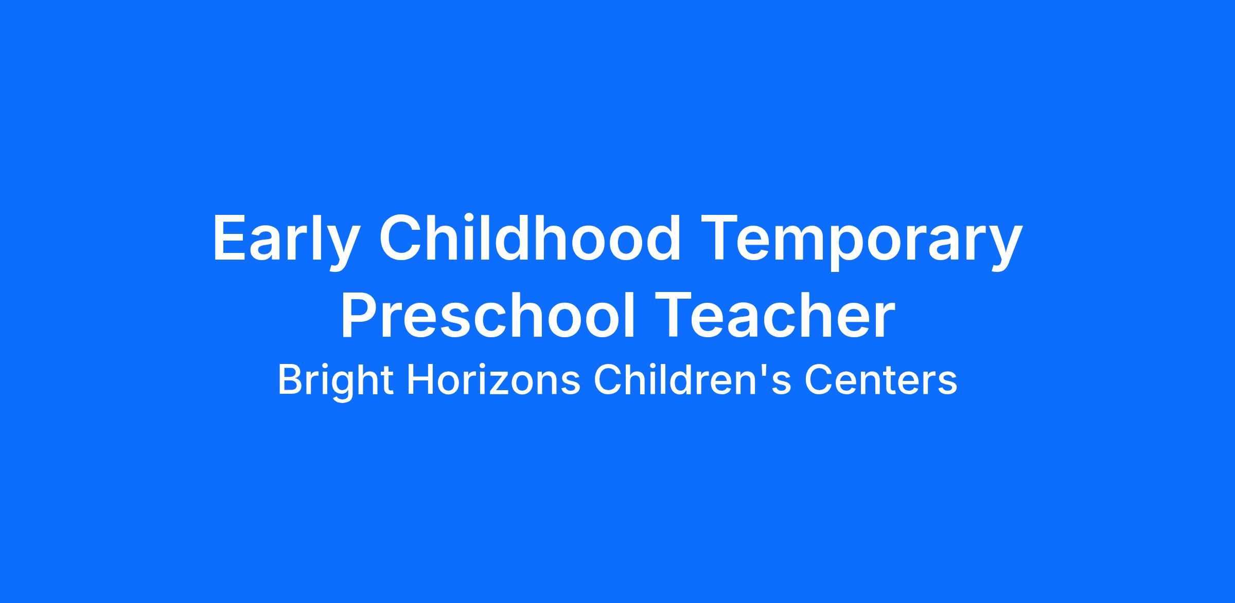 This position requires the employee to comply with all applicable federal, state, local, Bright Horizons’, and client site requirements concerning immunizations, employment physical/screening, and health and safety training. If hired, you will work in person in an early education/preschool child care center to provide supervision, care, curriculum delivery and services per Bright Horizons’ policies, procedures and guidance, in compliance with any applicable laws and regulations, and in a manner that will ensure the safety of children in Bright Horizons care and the employee.