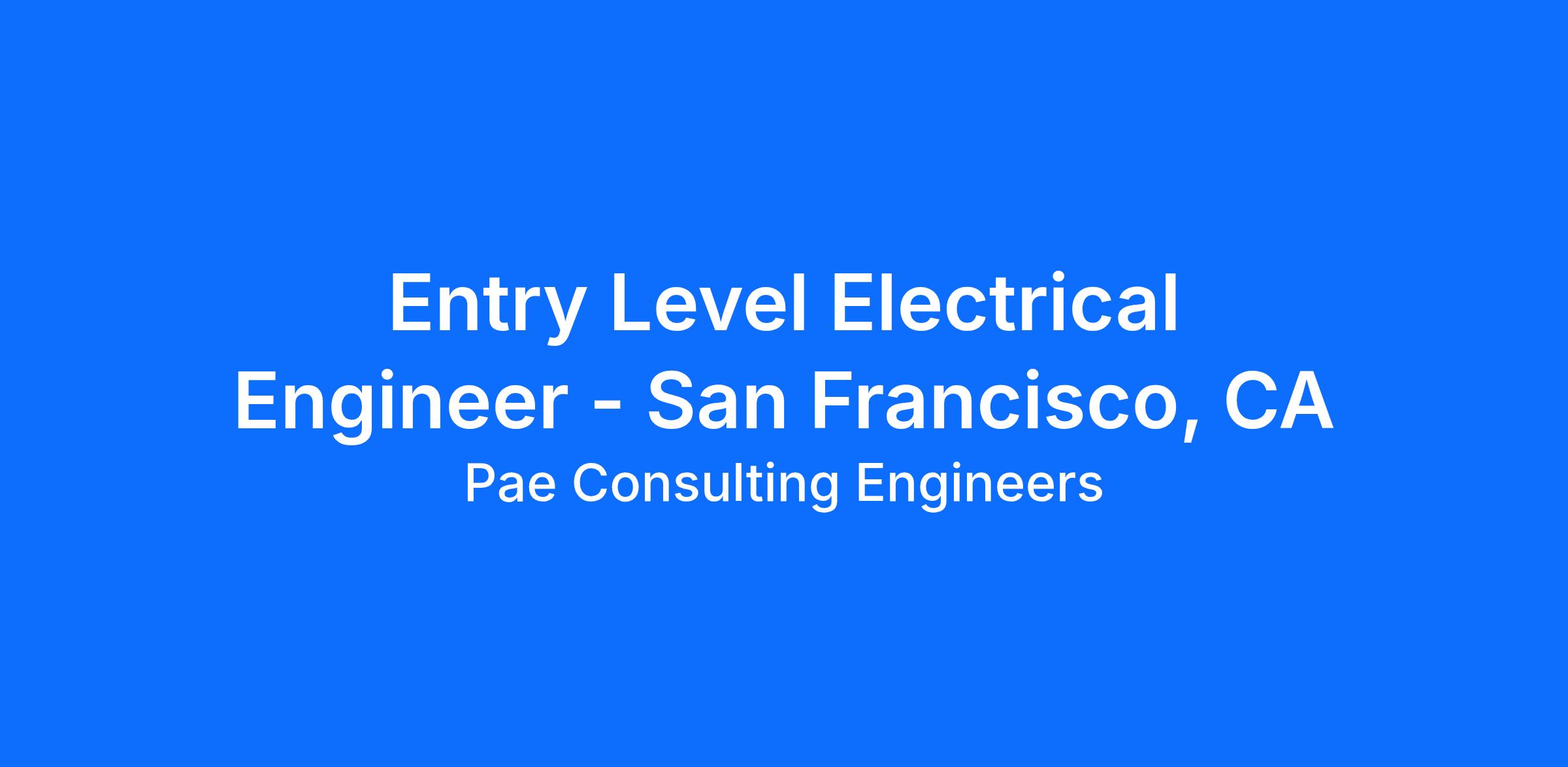 Entry Level Electrical Engineer - San Francisco, CA