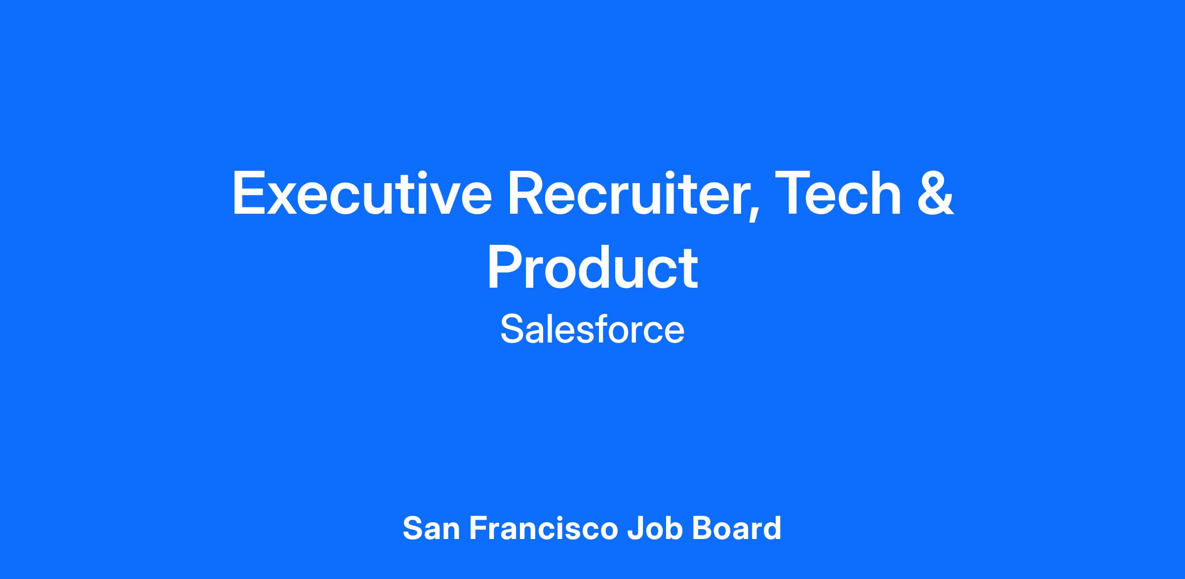 We are looking for an Executive Recruiter to join our versatile and impactful executive recruiting team within Salesforce Global Recruiting. In this role, the successful candidate will demonstrate a "creator mindset" and be well-versed in all aspects of executive search including market mapping of external leaders, candidate development & engagement, close partnership with the business and offer strategy and negotiation. The Executive Recruiter will support hiring for VP level and above roles for our Tech & Products organizations. The types of roles could range from Software Engineering to Infrastructure to Product to Business Technology to AI research and more.