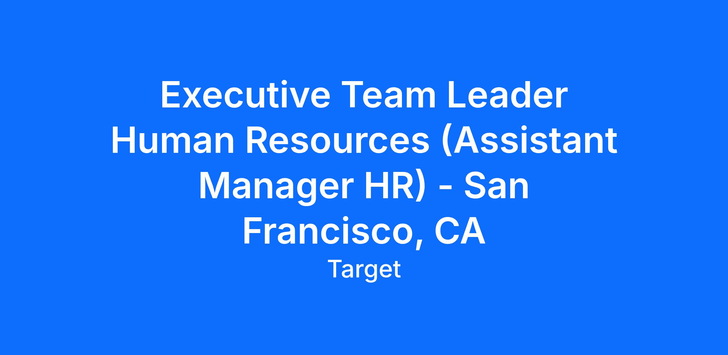 At Target, we believe in our team members having meaningful experiences that help them build and develop skills for a career. The role of a Human Resources Executive Team Leader can provide you with the: