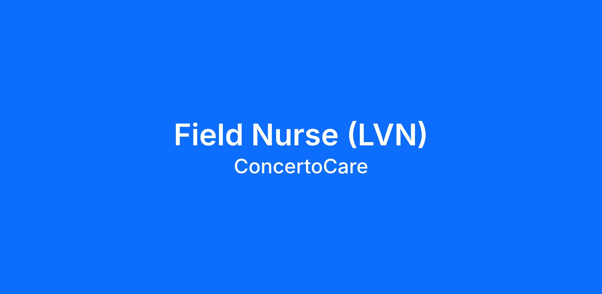 ConcertoCare (LVNs) Licensed Vocational Nurses deliver clinical care to patients in their homes and provide virtual clinical care support. The Licensed Vocational Nurse is a key member of our care team, helping to extend the reach of our care delivery and ensure our patients get the right care, in the right place, by the right person, and at the right time. Key activities include direct patient care, clinical visit support, the performance of health screenings and bedside clinical procedures, virtual care facilitation, and routine care coordination support. This position reports to the Practice Manager.