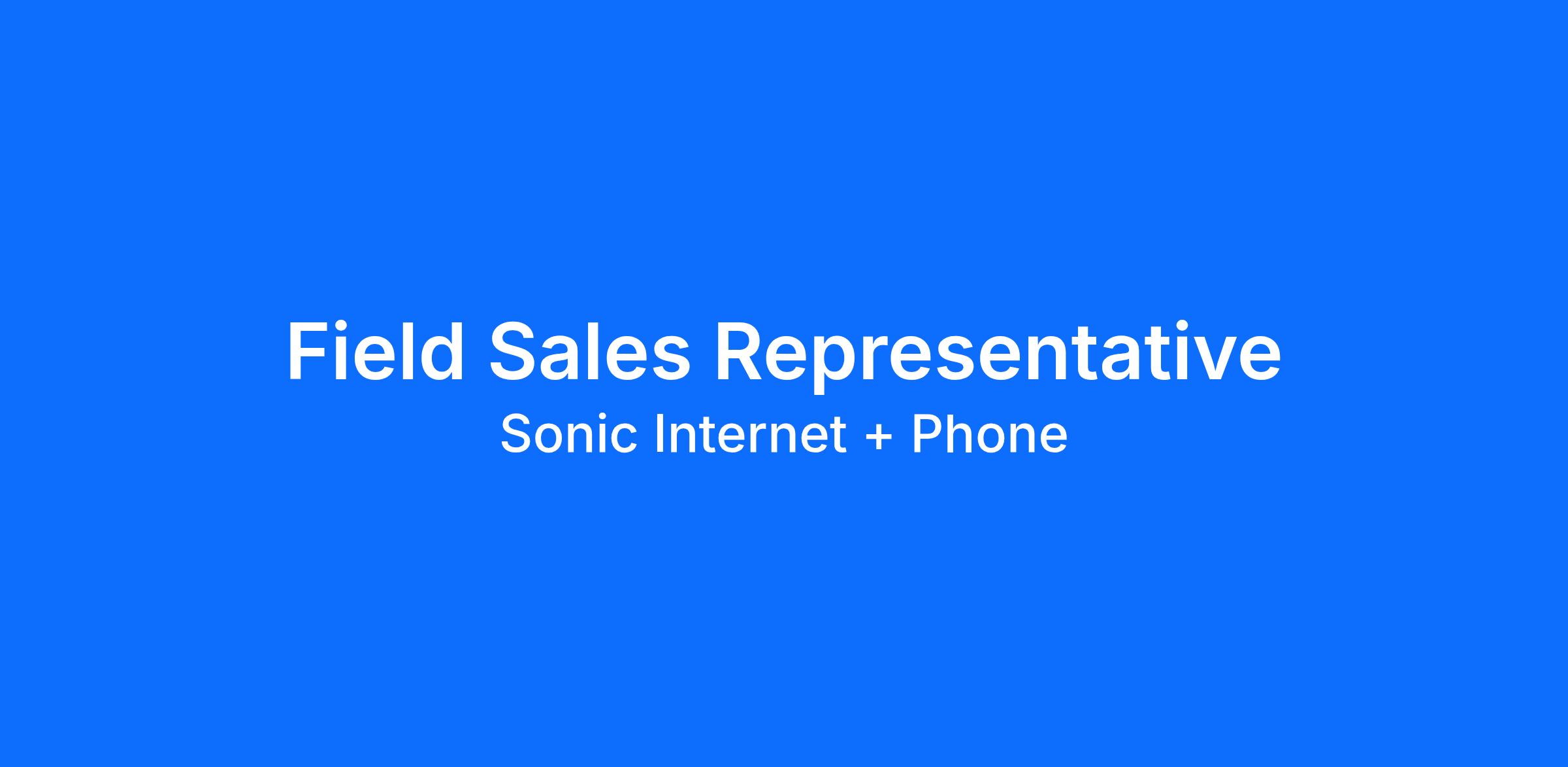Sonic Internet is seeking a highly motivated Door to Door Sales Rep to join our fast-growing team. We are seeking individuals that are ready to transition their field sales abilities to an extremely fast-growing industry, with one of the leading companies in the space, resulting in more job security, better benefits and so much more!