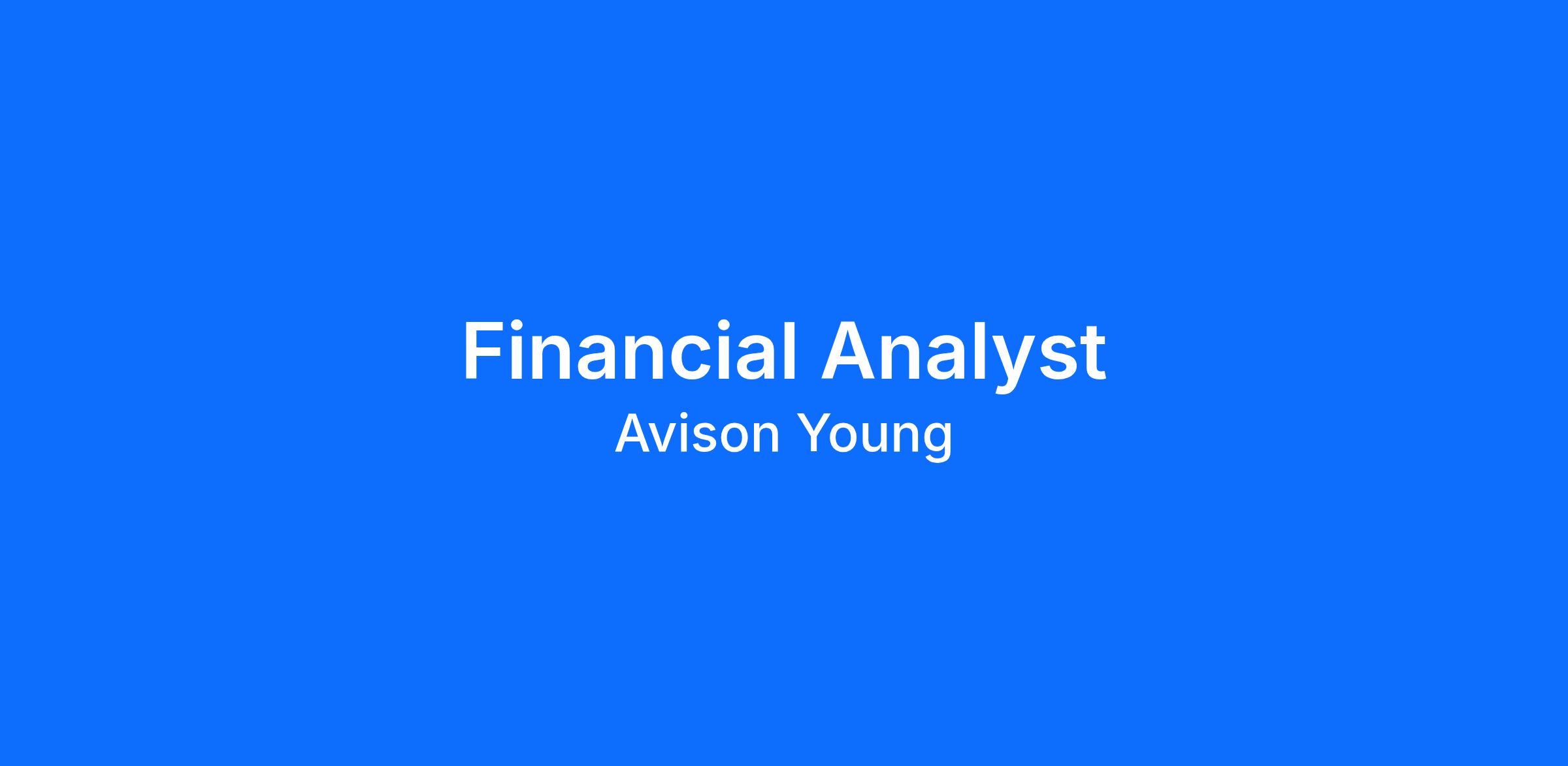 The Avison Young downtown San Francisco office is seeking a Financial Analyst, able to work in a fast-paced, multi-tasking environment with a senior broker.