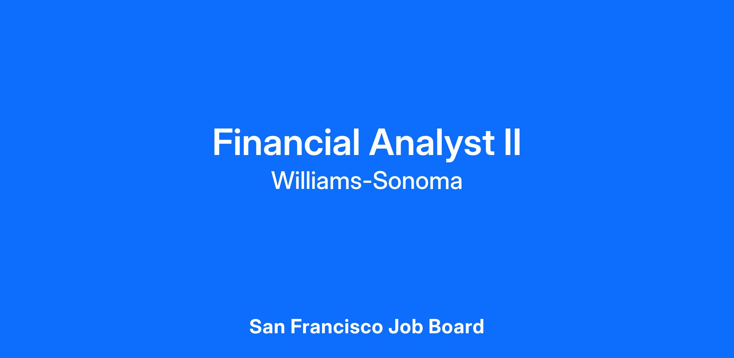 Williams-Sonoma, Inc. is an Equal Opportunity Employer. Williams-Sonoma, Inc. will consider for employment qualified applicants with criminal histories in a manner consistent with the requirements of the San Francisco Fair Chance Ordinance, or other applicable state or local laws and ordinances.