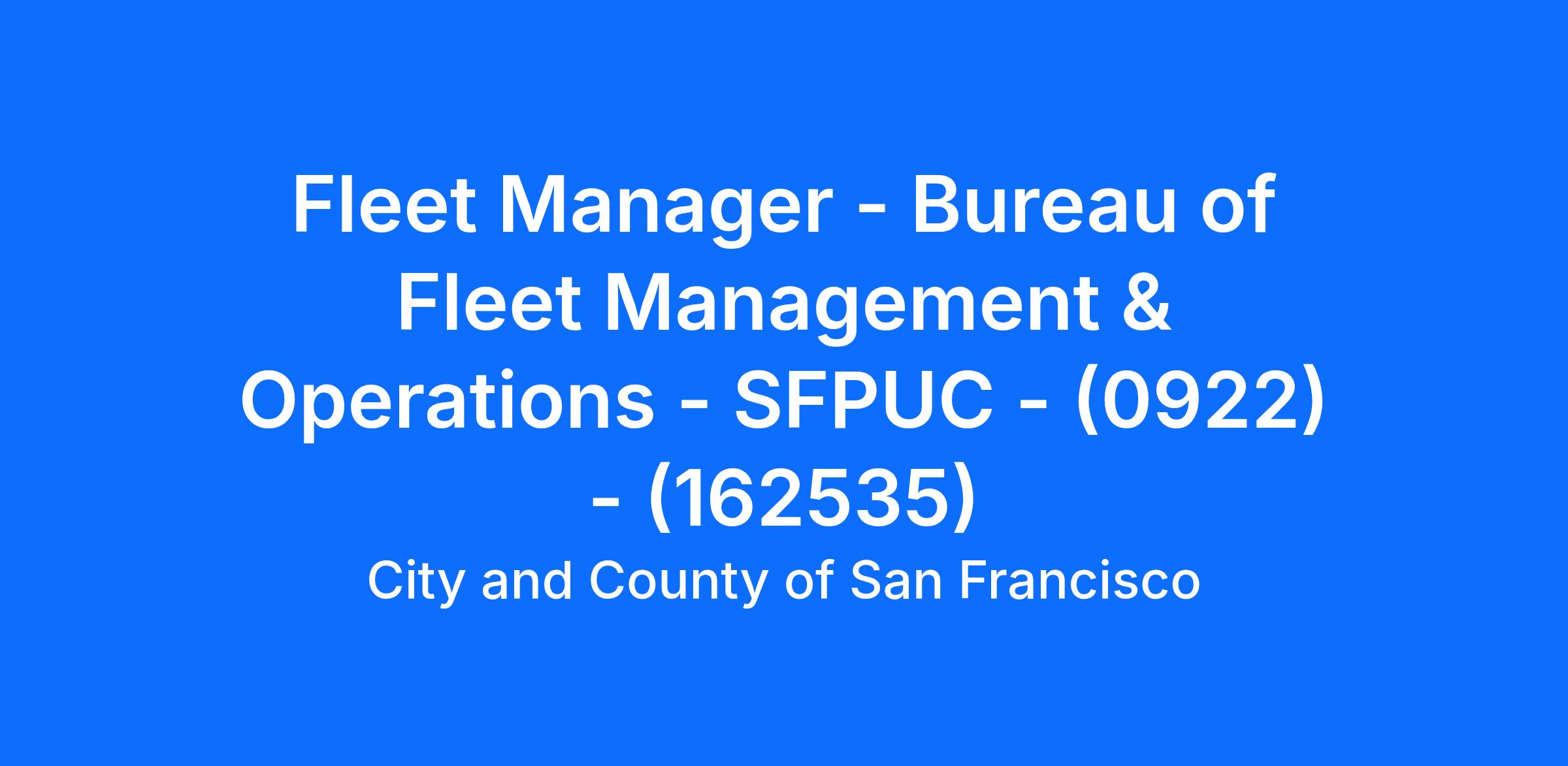 The Bureau of Fleet Management and Operations (BFMO), alternatively known as, is responsible for managing the existing fleet inventory (approx. 1,600 units) inventory including the acquisition and liquidation of vehicles, ongoing maintenance, strategic long-term planning. related policies and alternative transportation options. The Fleet Manager reports to the Deputy Chief Financial Officer and is head of the Fleet Services Team.