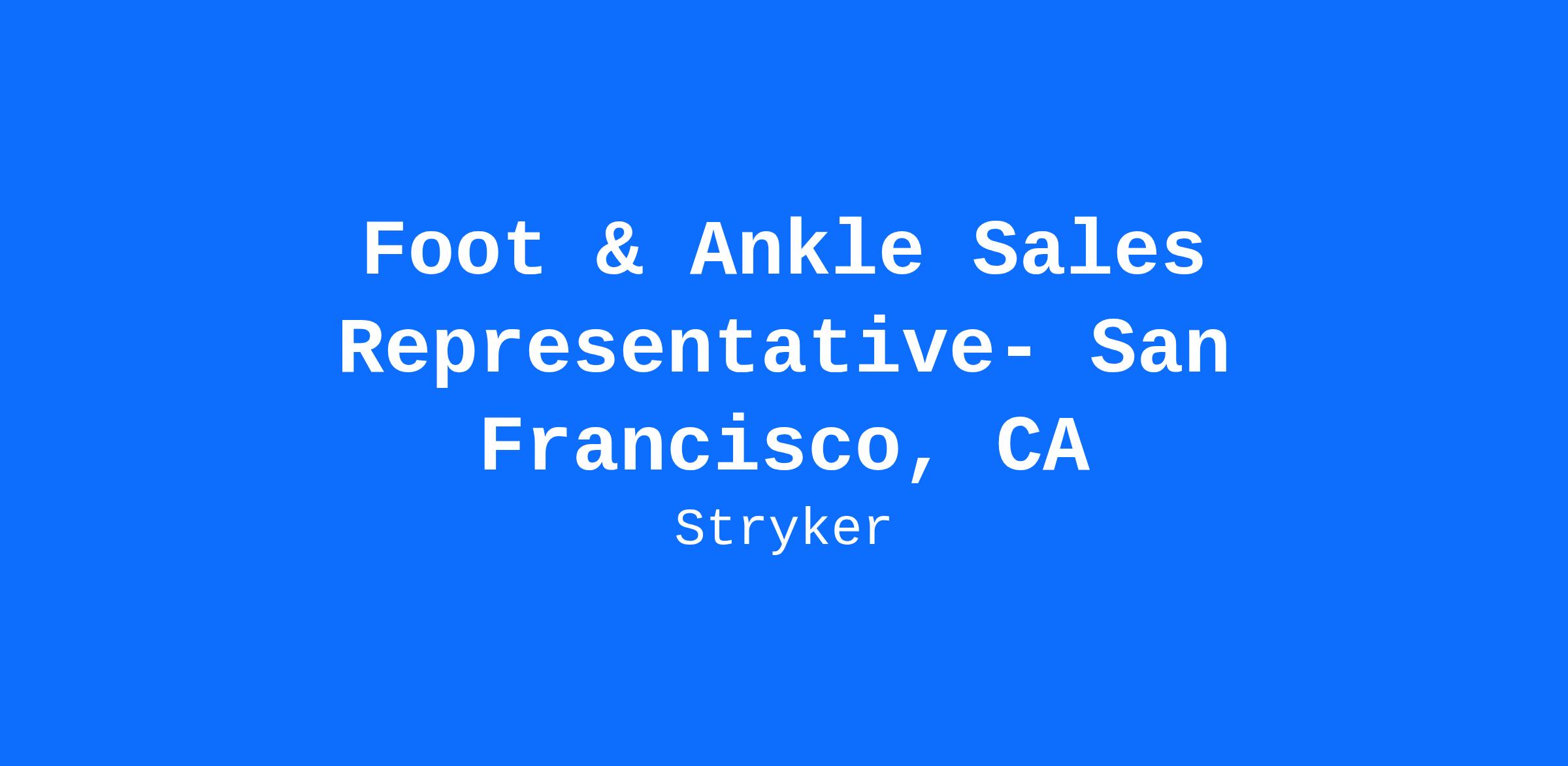 - As a Foot & Ankle Sales Rep you love driving in the fast lane and live out your mission to change lives by selling Stryker products that are making healthcare better.