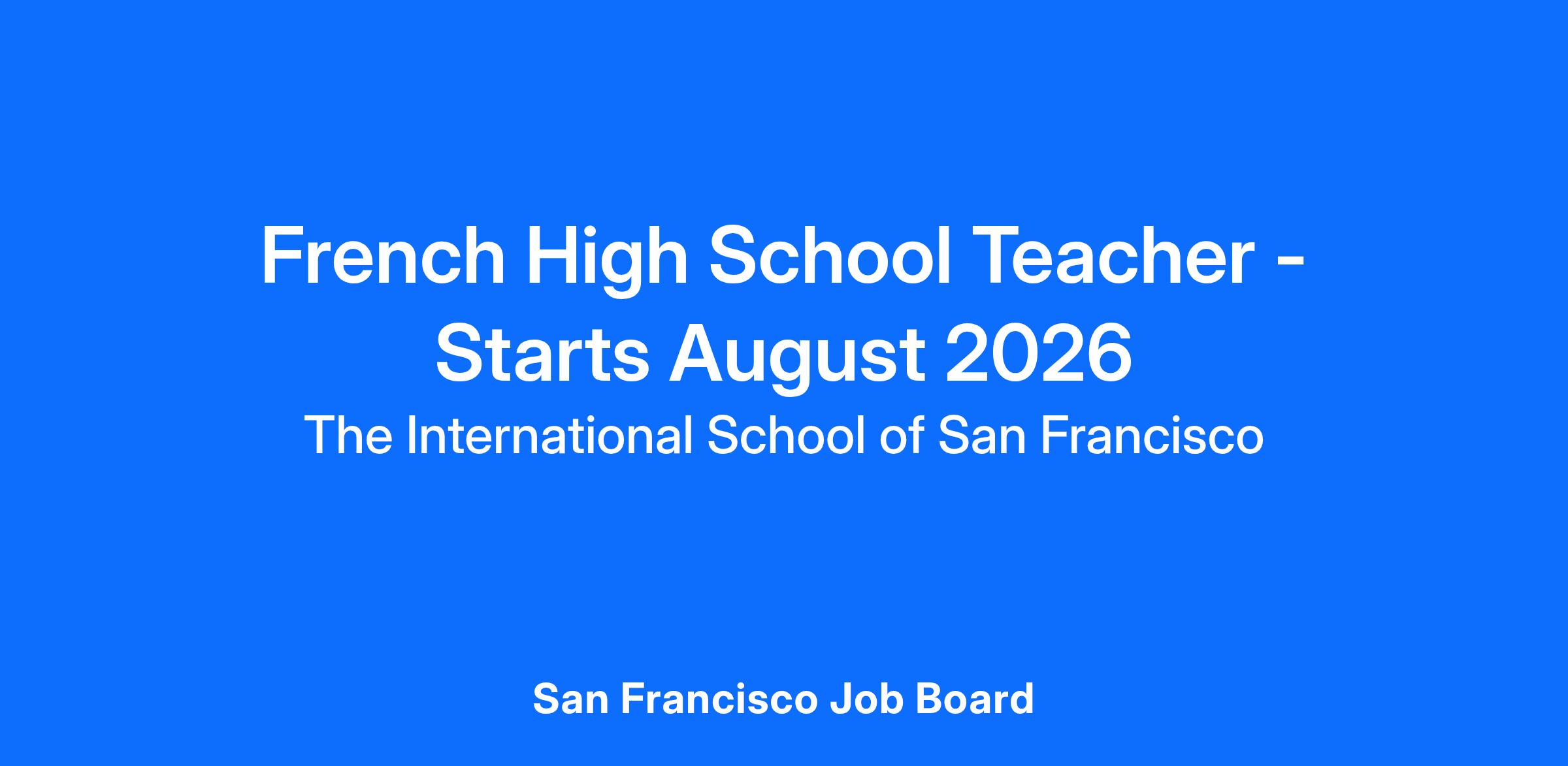 We are seeking an experienced High School French language acquisition teacher who is passionate,
