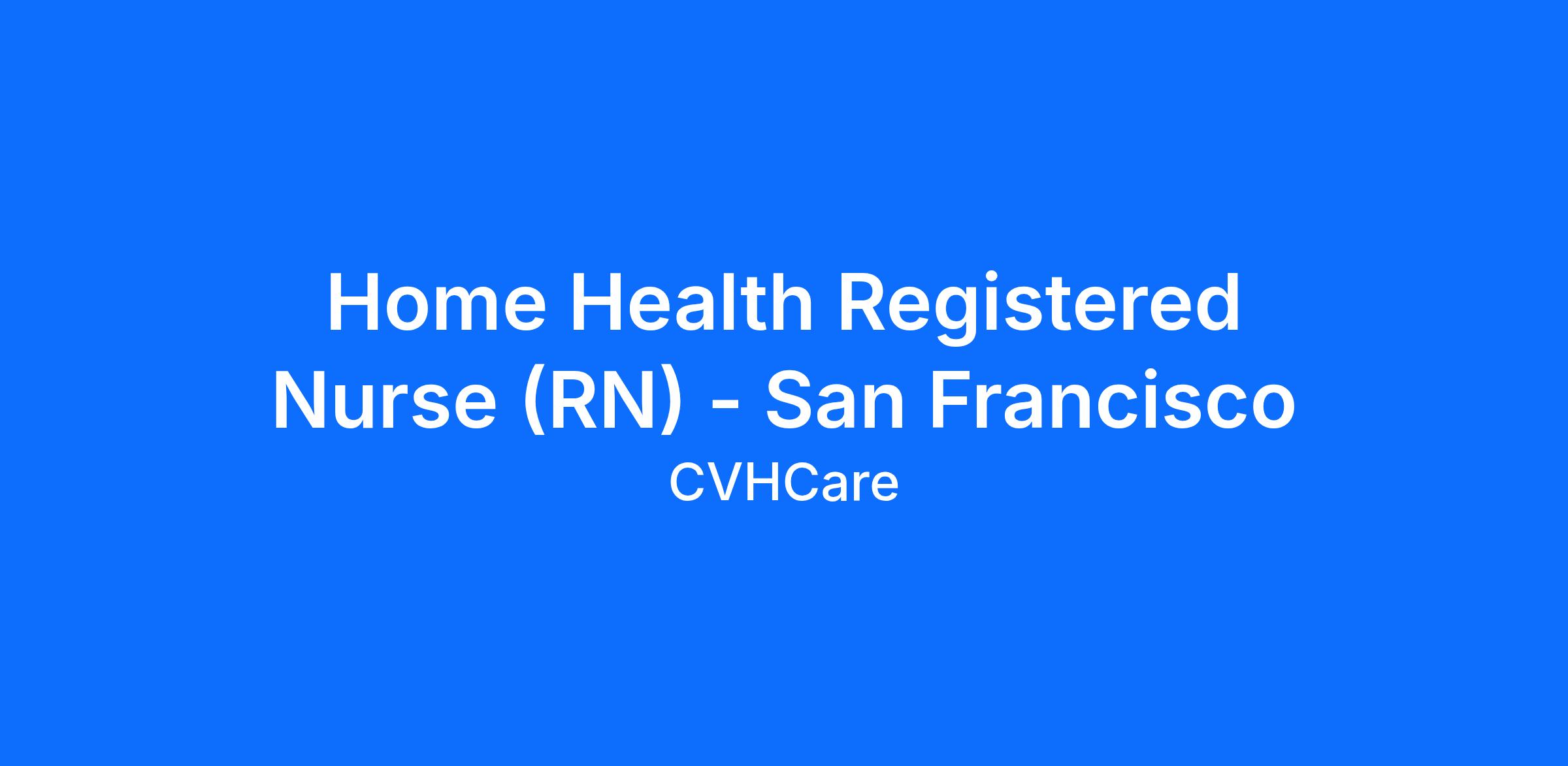 CVHCare, a leader in Home Health Clinical services, headquartered in beautiful San Ramon CA, is currently seeking a Registered Nurse. This is a great opportunity to join an established leader in the California home health industry, with the freedom to put your skills and imagination to work. We are Compassionate Visionary Health Care, where passion and team spirit are nurtured and rewarded.