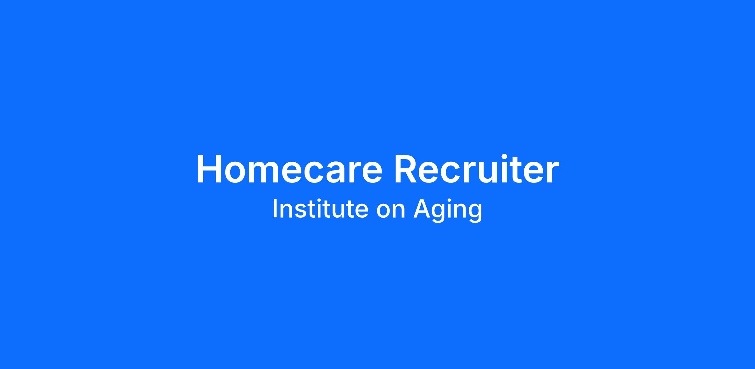 Institute on Aging is seeking an experienced Home Care Recruiter to join our growing Bay Area home Care team.