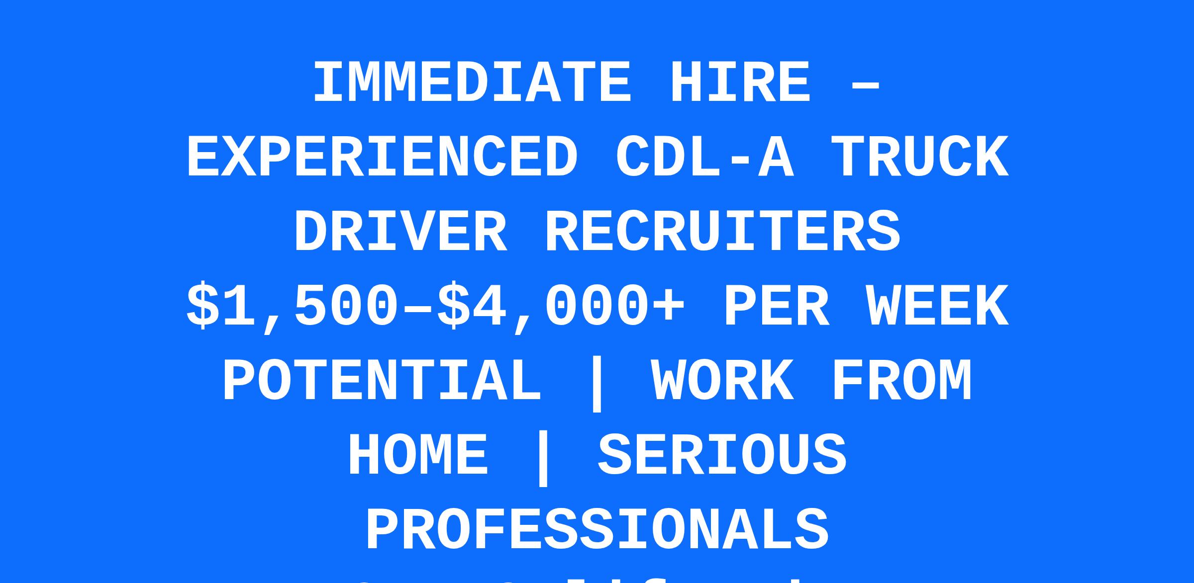 Truck Driver Nation is urgently hiring experienced CDL-A Truck Driver Recruiters who know this business and know how to produce results. This is a performance-driven opportunity with real weekly earning power for recruiters who actually work the pipeline from start to finish.