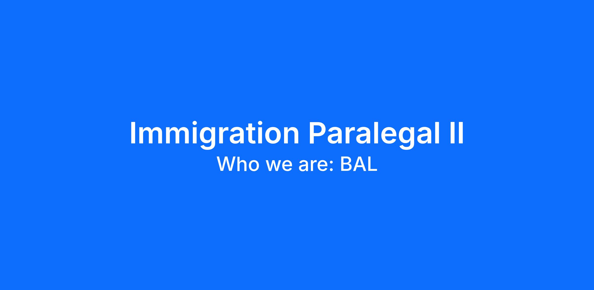 Who we are: BAL is a team of brilliant people who change lives through elite immigration work and collaborative innovation. We pursue the exceptional in all that we do, but never at the expense of our values. There’s no denying our work is demanding, both in volume and pace, but we’re up for the challenge. We love the balance of hard work and fun – so, you’ll see us in jeans as we shatter glass ceilings and conventional stereotypes. BAL employees feel valued, rewarded, and respected. We seek opportunities to be of service to others and our communities. We are committed to your growth and development, and want to set you up for success here at BAL and beyond.