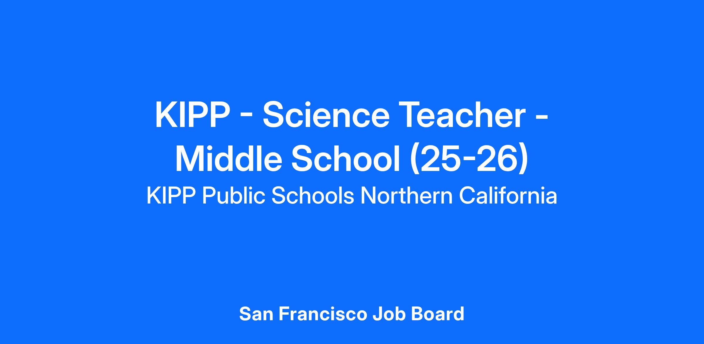 This is the application for Elementary, Middle, and High School roles at KIPP Public Schools Northern California in the 2025-2026 school year. Locations include San Francisco, Oakland, San Lorenzo, San Jose, Redwood City, East Palo Alto, and Stockton. You can see a full list of our openings here.