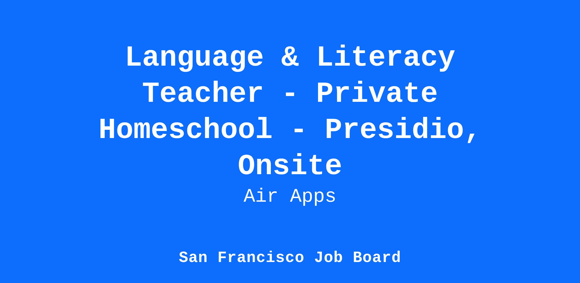 We are seeking a gentle and inspiring Language & Literacy Teacher to support early reading and writing development for two children aged 4 and 6. In this in-person role in the Presidio, San Francisco, you will design engaging activities that build phonemic awareness, vocabulary, comprehension, and a love of storytelling.