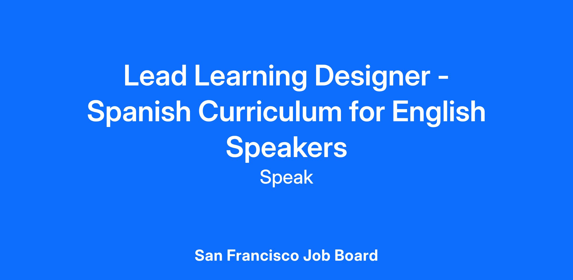 We’re looking for a Lead Learning Designer to strengthen and elevate one of Speak’s largest markets: Spanish. You’ll bring firepower to the team to enable us to move faster, try new things, and deliver best-in-class Spanish learning experiences at scale.
