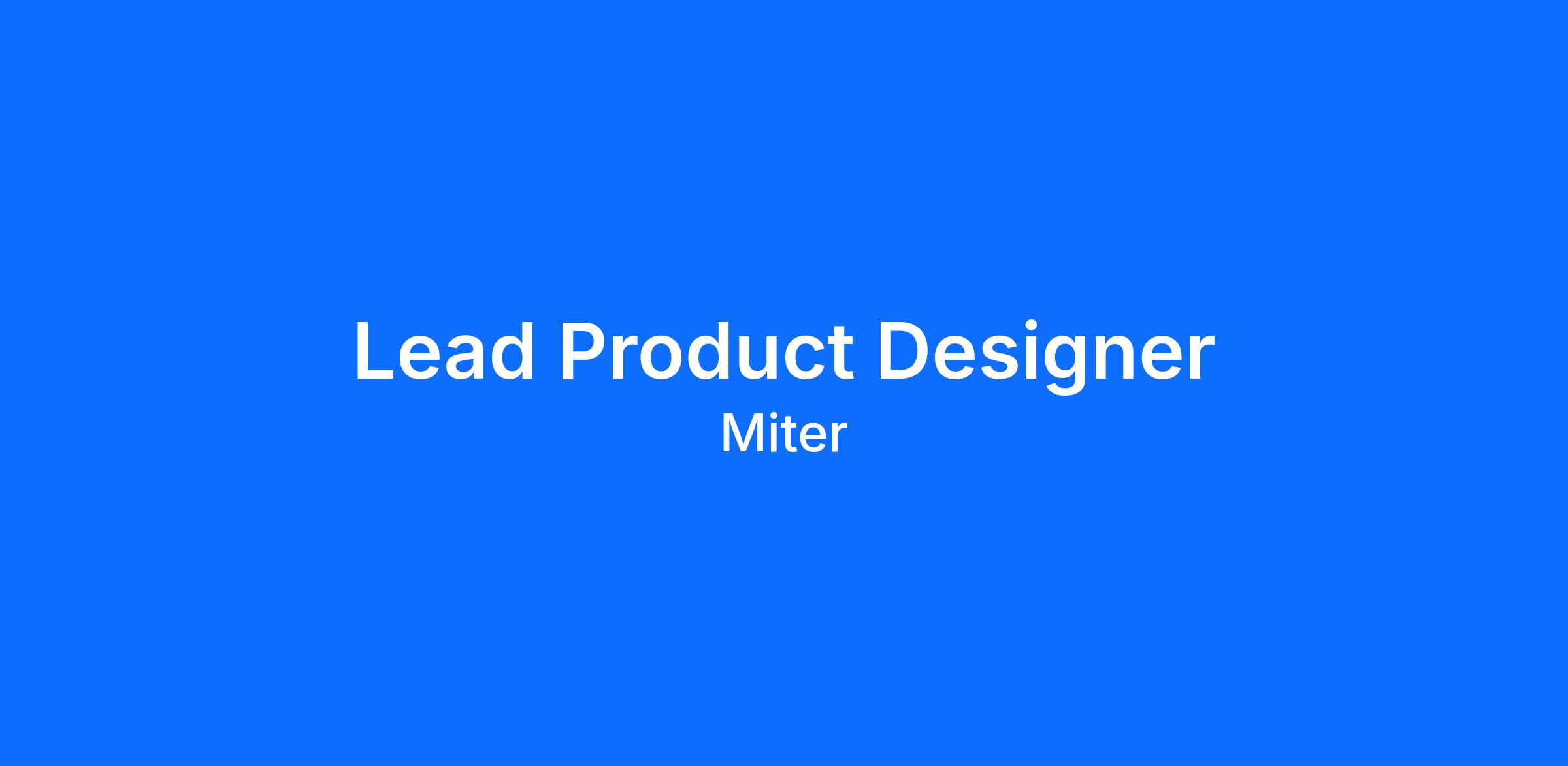 As a Lead Product Designer at Miter, you’ll have significant ownership over the design of core workflows and experiences across our platform. You’ll play a central role in shaping product direction, with the autonomy to identify problems, set priorities, and drive solutions that meaningfully impact how contractors run their businesses.